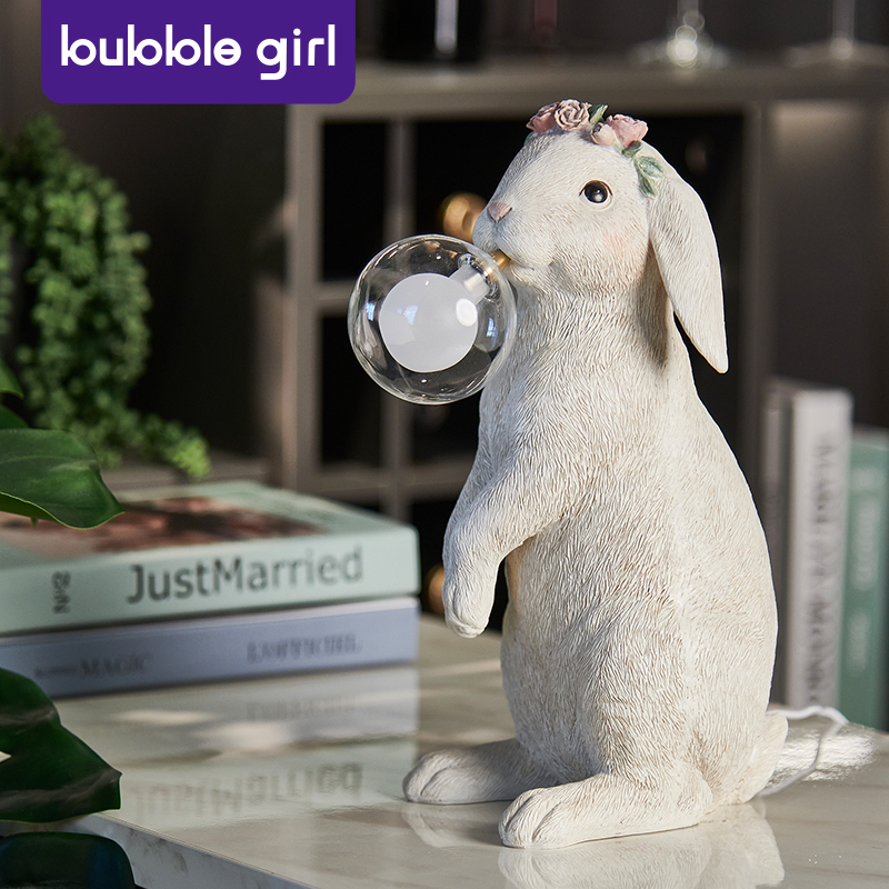 吹泡泡动物北欧狮子天使兔子轻奢创意家居LED小夜灯客厅卧室床头