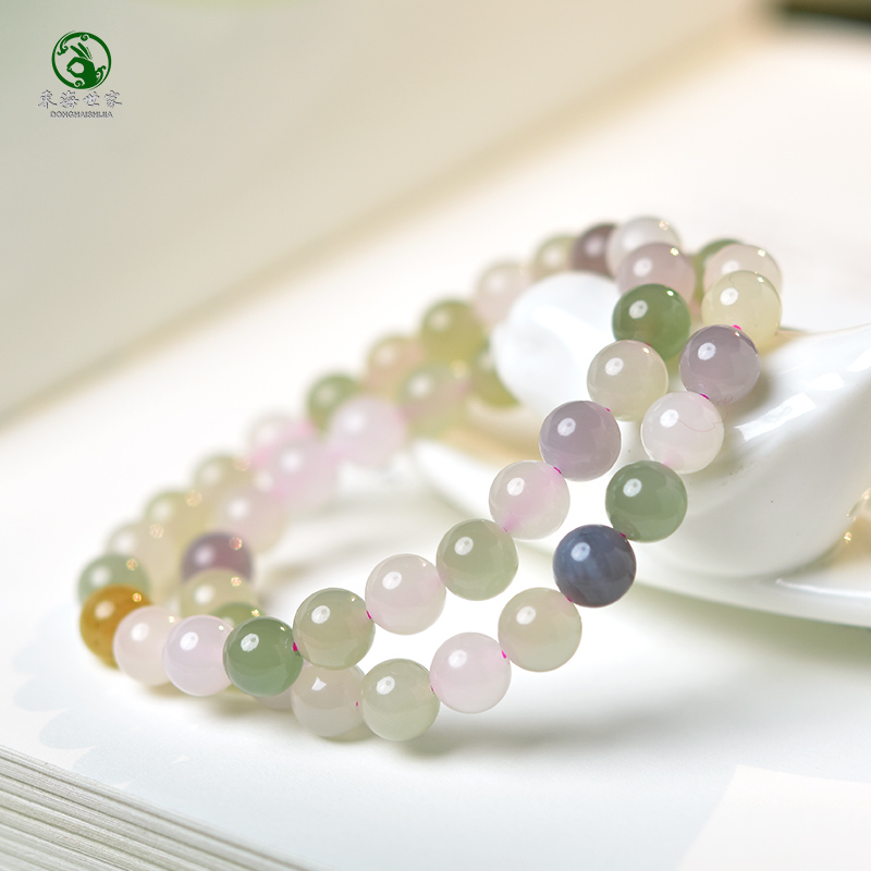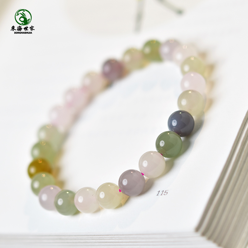 和田玉手串女男东海水晶玛瑙玉髓翡翠马卡龙色多宝散珠子玉石手链