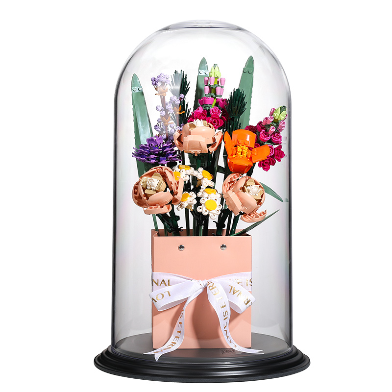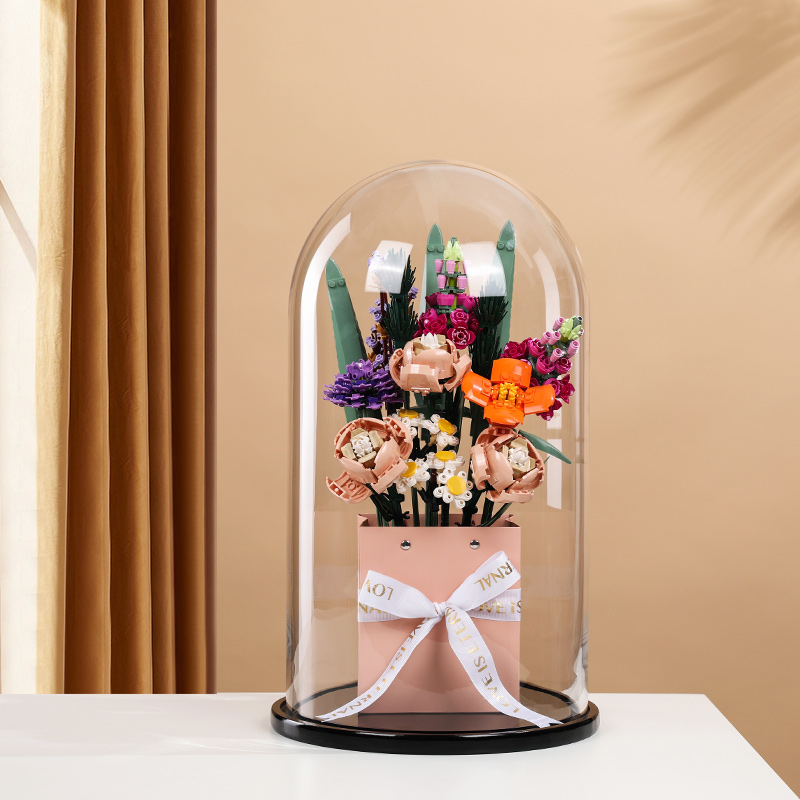 永生花玻璃罩子透明乐高花束10280专用PC亚克力展示盒干花防尘罩