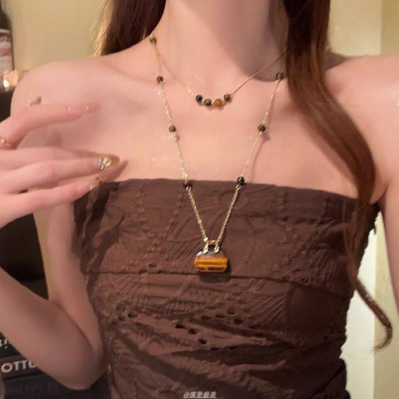 宝藏礼物!项链女咖色包包串珠毛衣链轻奢高级感叠戴配饰2025新款