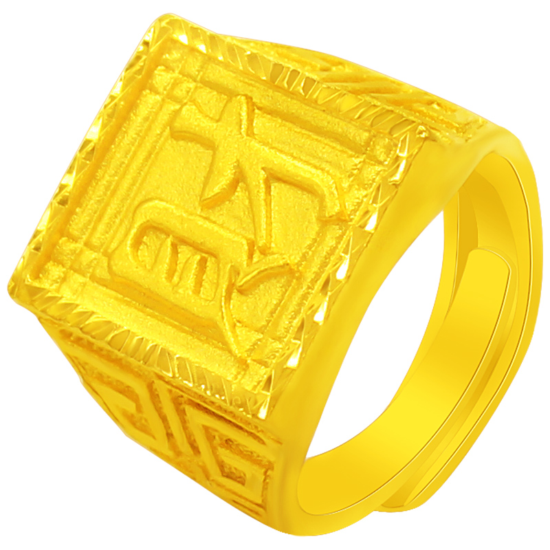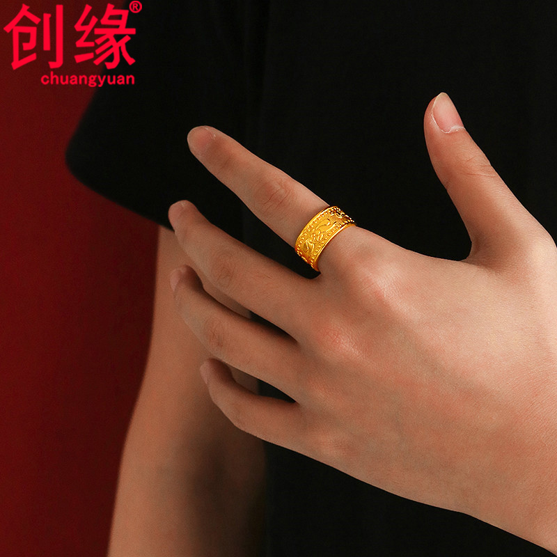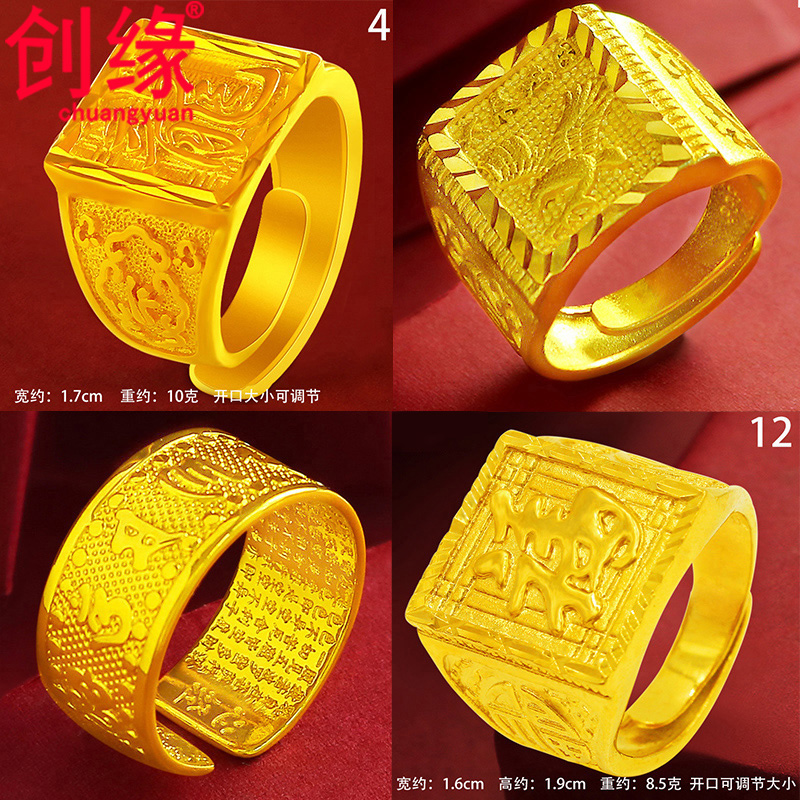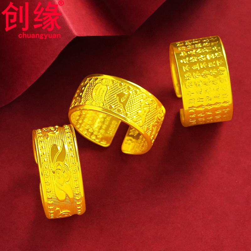 创缘镀黄金戒指发财福字镀沙金男士指环马到成功扳指仿99戒指开口