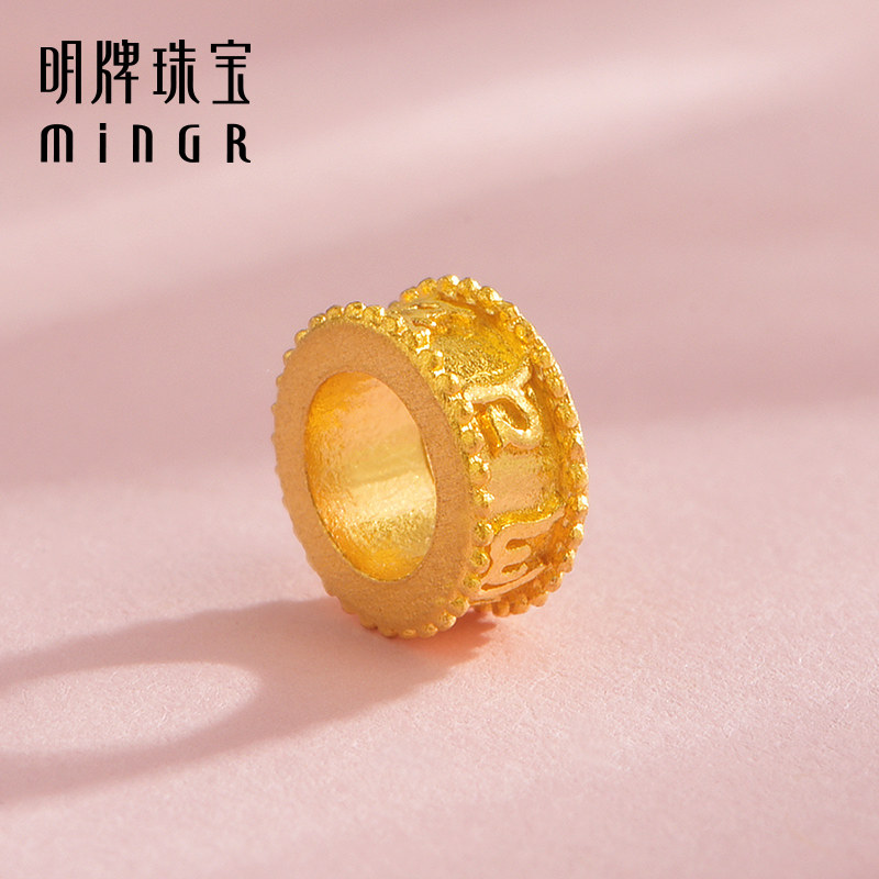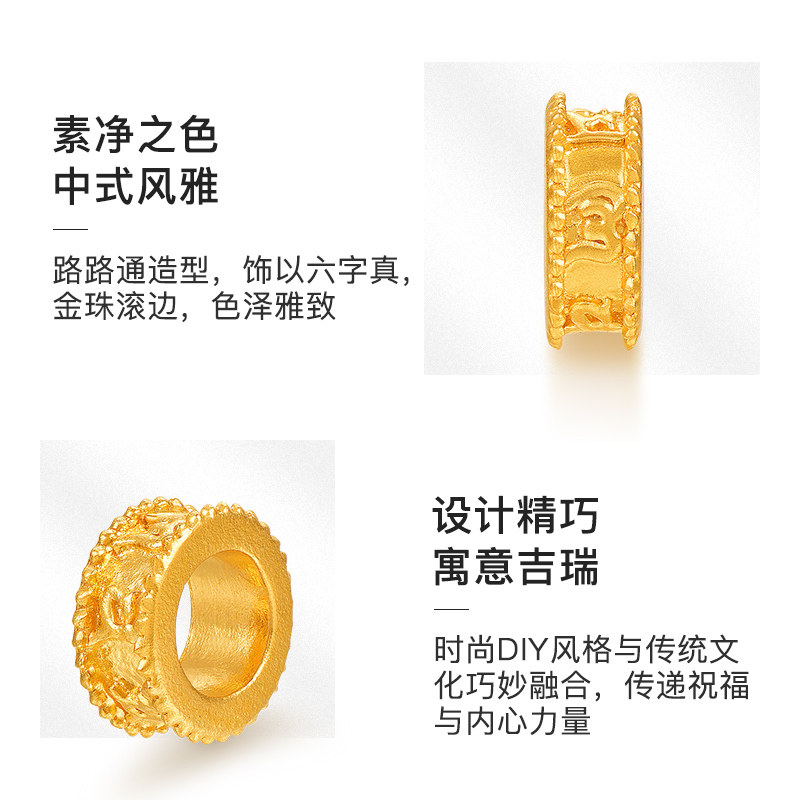 明牌珠宝5G黄金多吉·六字真言路路通 足金转运珠手串串珠AFE0024