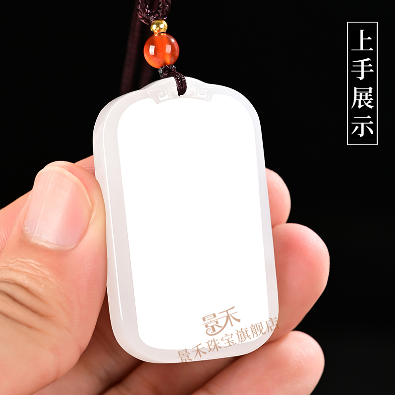 新疆和田玉吊坠男羊脂白玉平安无事牌玉坠天然玉石情侣一对玉佩女