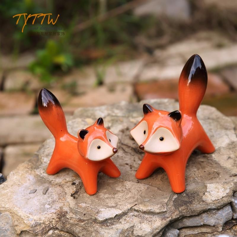 桌面陶瓷摆件动物狐狸兔子饰品情侣田园生日新婚礼物电视柜创意工