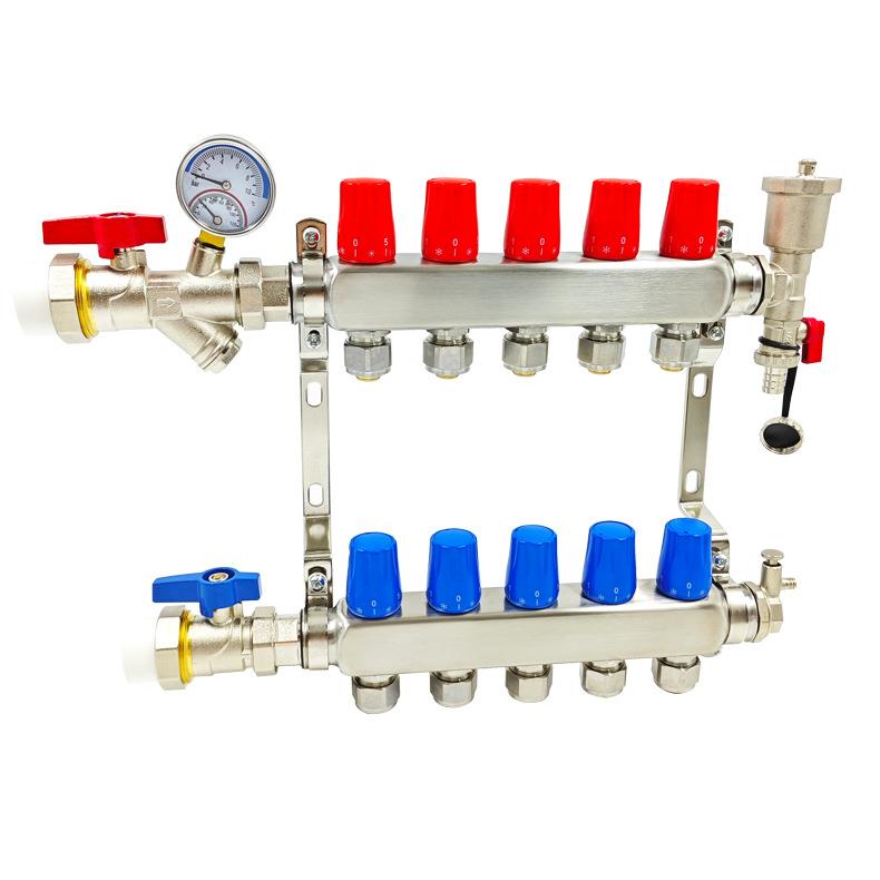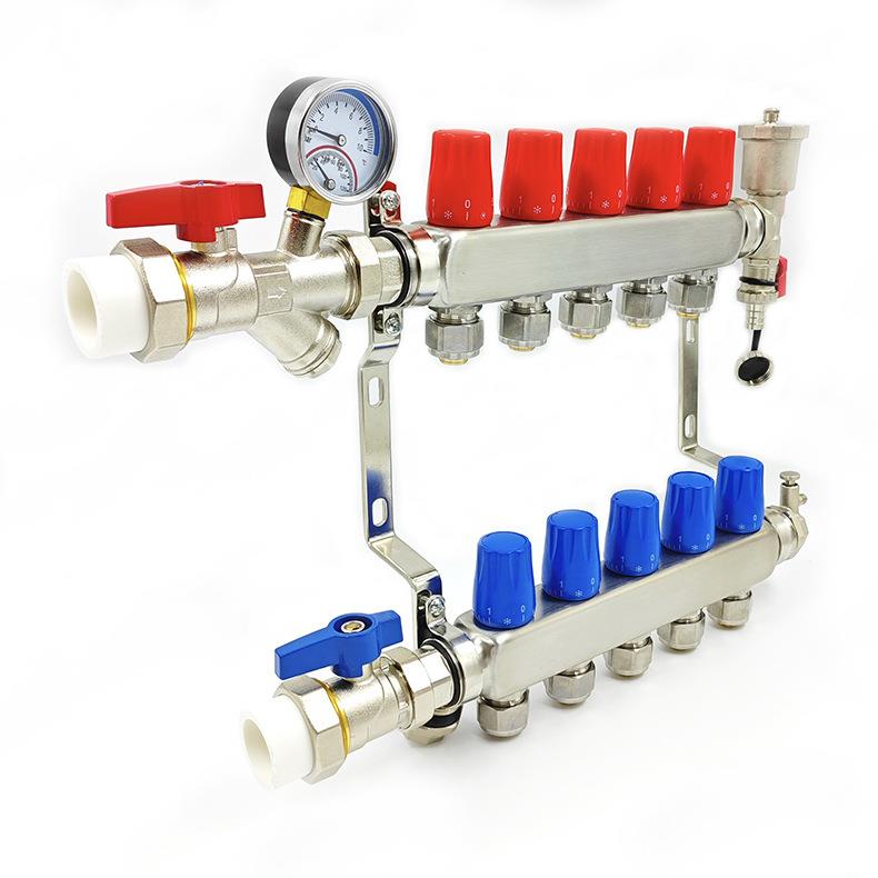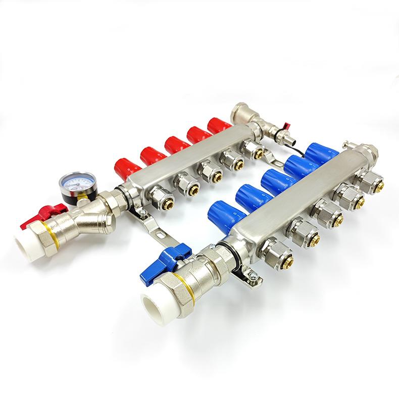 304不锈钢地暖分水器1寸家用大流量集分水器供采暖地热分水器