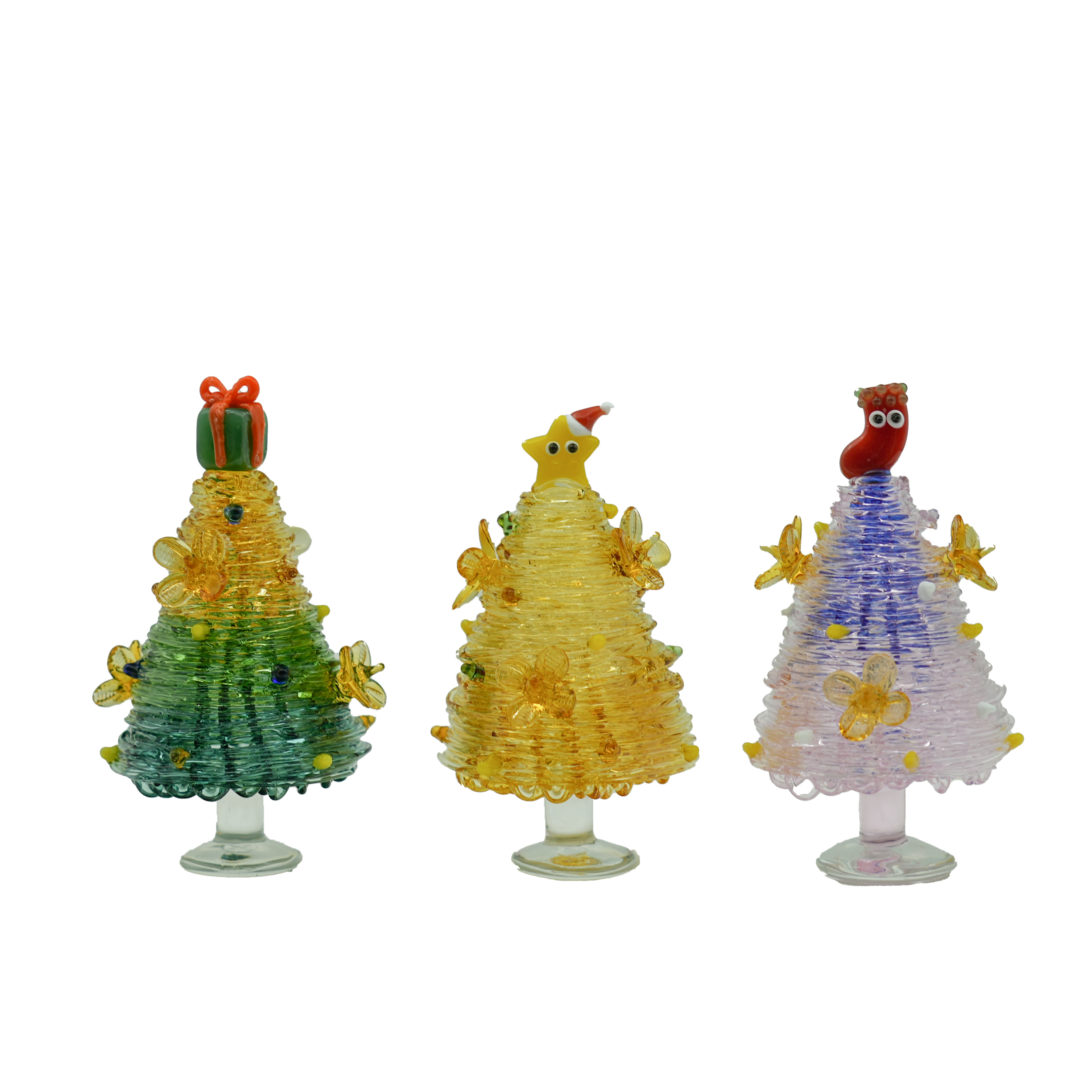 琉璃手作拼色桂花圣诞树摆件车载桌面治愈系装饰品氛围感节日礼物