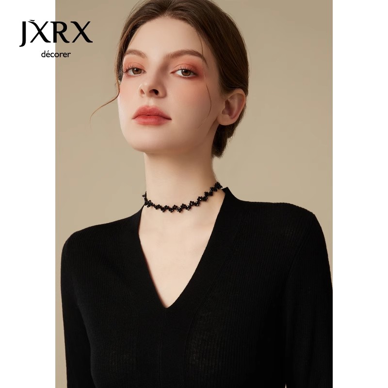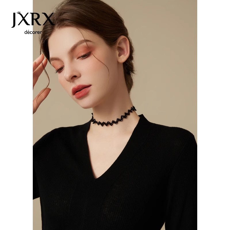JXRX高级水晶项链女款黑色设计感小众锁骨链2025年新款脖颈链子