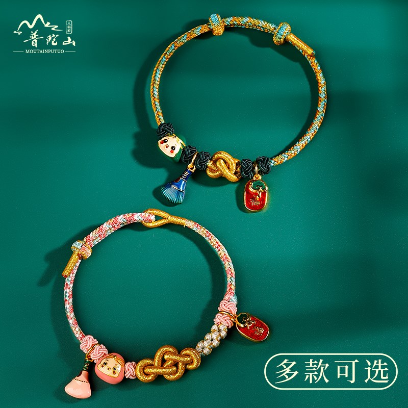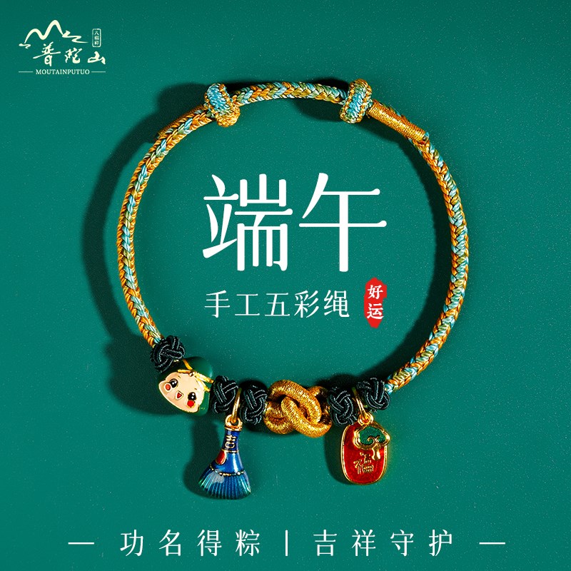 普陀山2025新款端午节五彩绳手链手工编织儿童成人小粽子手绳礼物