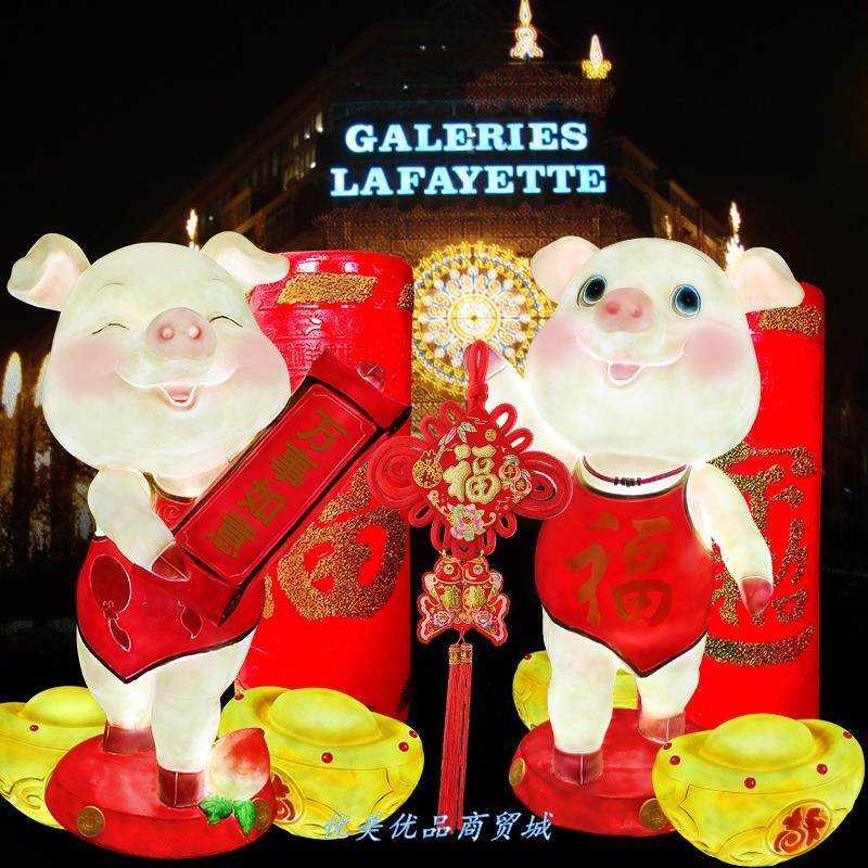 玻璃钢卡通生肖猪户外景观商场美陈布置房地产喜庆装饰品发光摆件