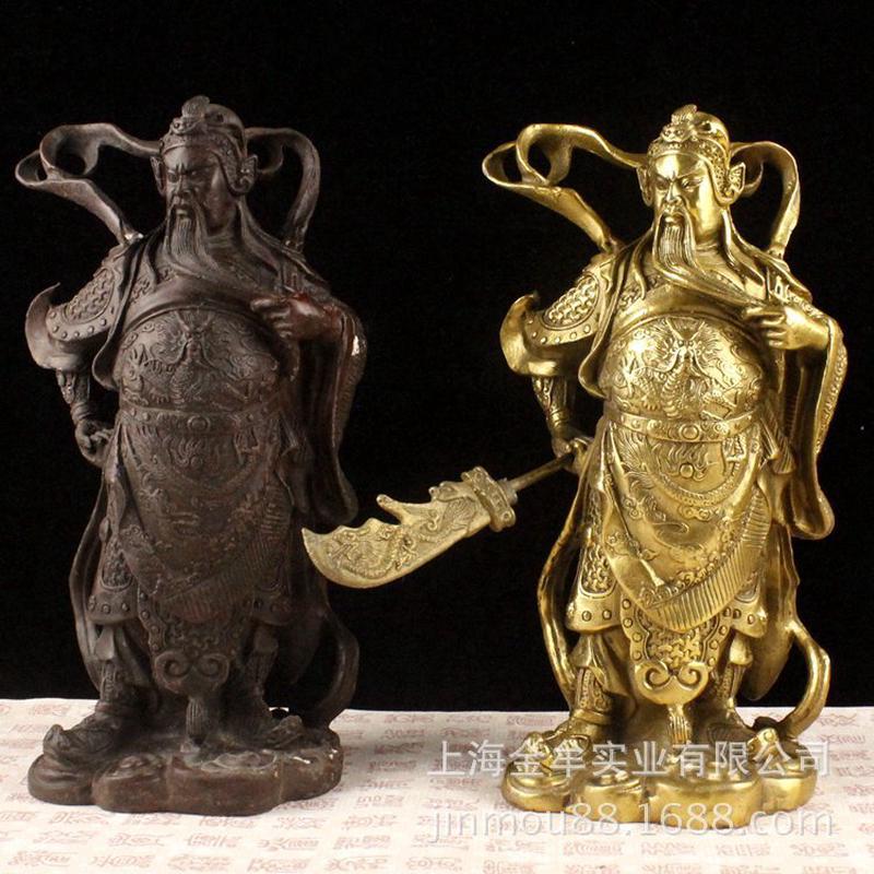 纯黄铜武财神关公摆件飘带提刀关二爷铜像神像