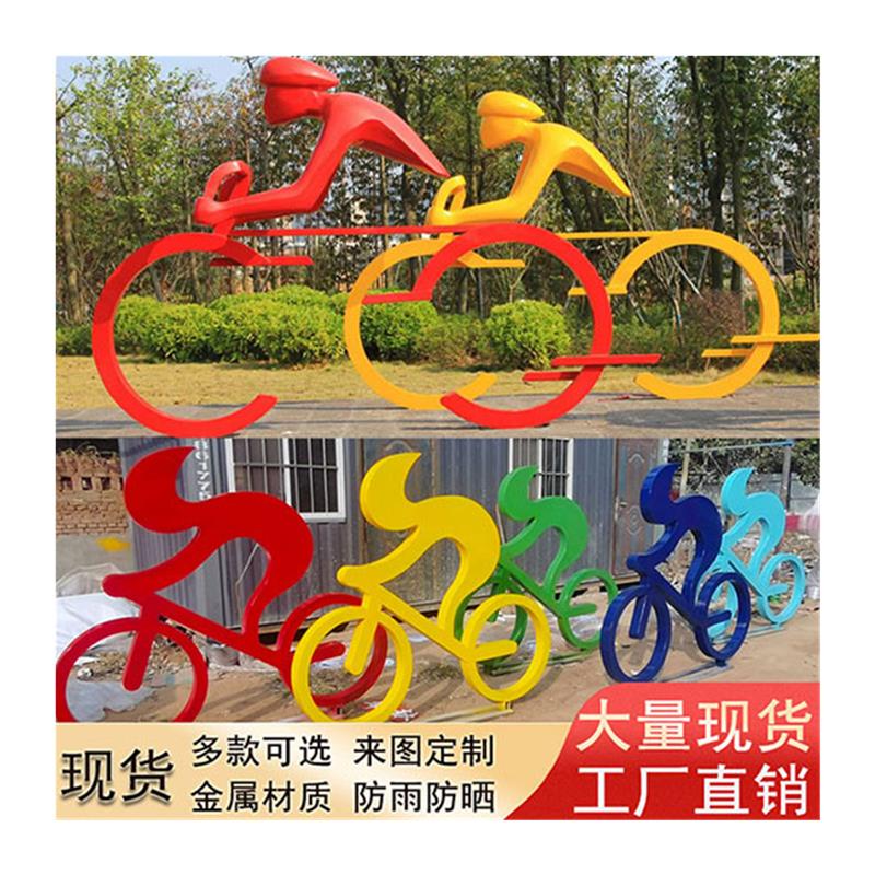 现货自行车雕塑不锈钢剪影竞技运动模型广场公园抽象骑行人物摆件