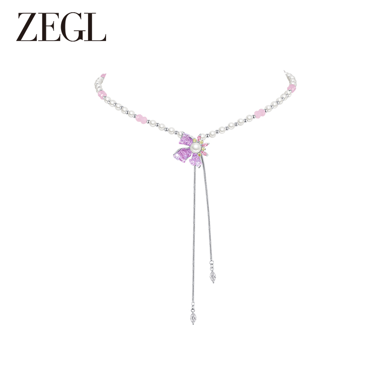 ZEGL设计师花园系列蝴蝶串珠项链女流苏高级感人造珍珠锁骨链饰品
