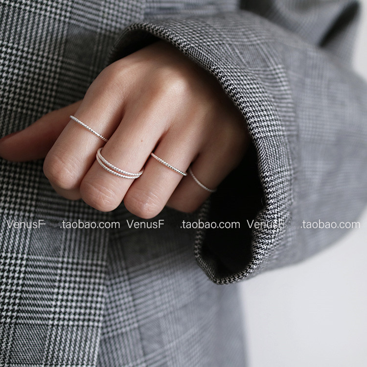 不掉色Ins韩国博主同款极简简约925纯银超细麻花闭口戒指指环素银