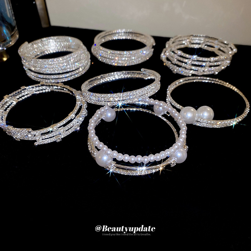 人造珍珠款多层镶钻弹力手镯ins精致时尚手环跨境华丽高级感手饰