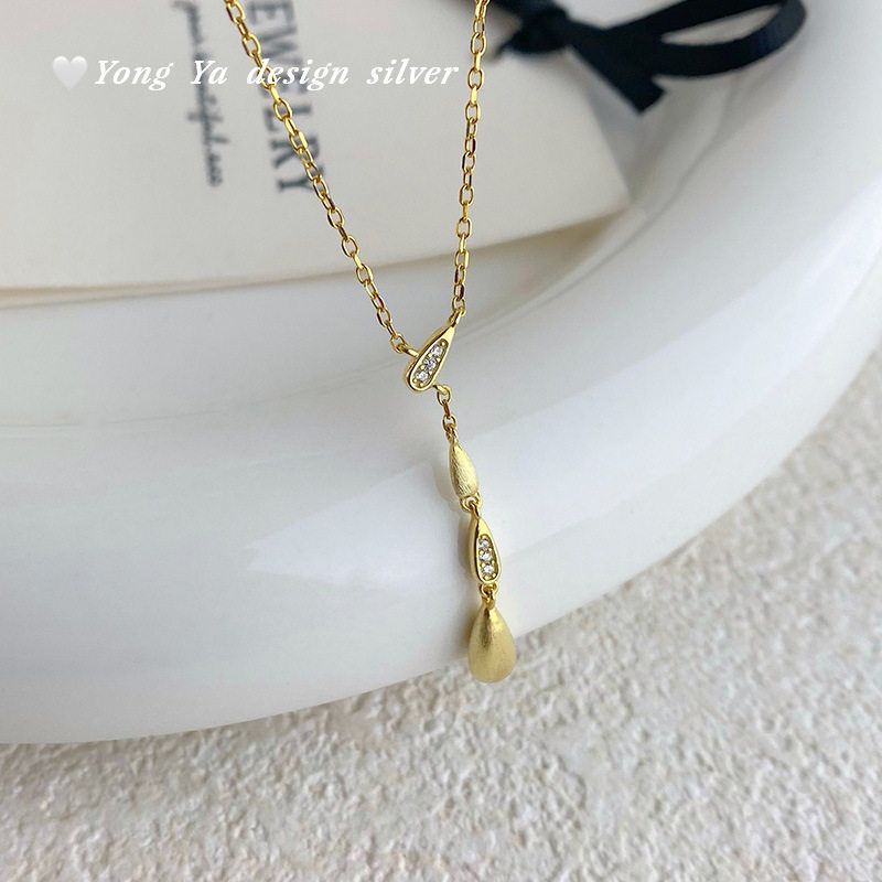 S925纯银轻奢拉丝水滴锆石项链女小众百搭几何气质高级锁骨链代发