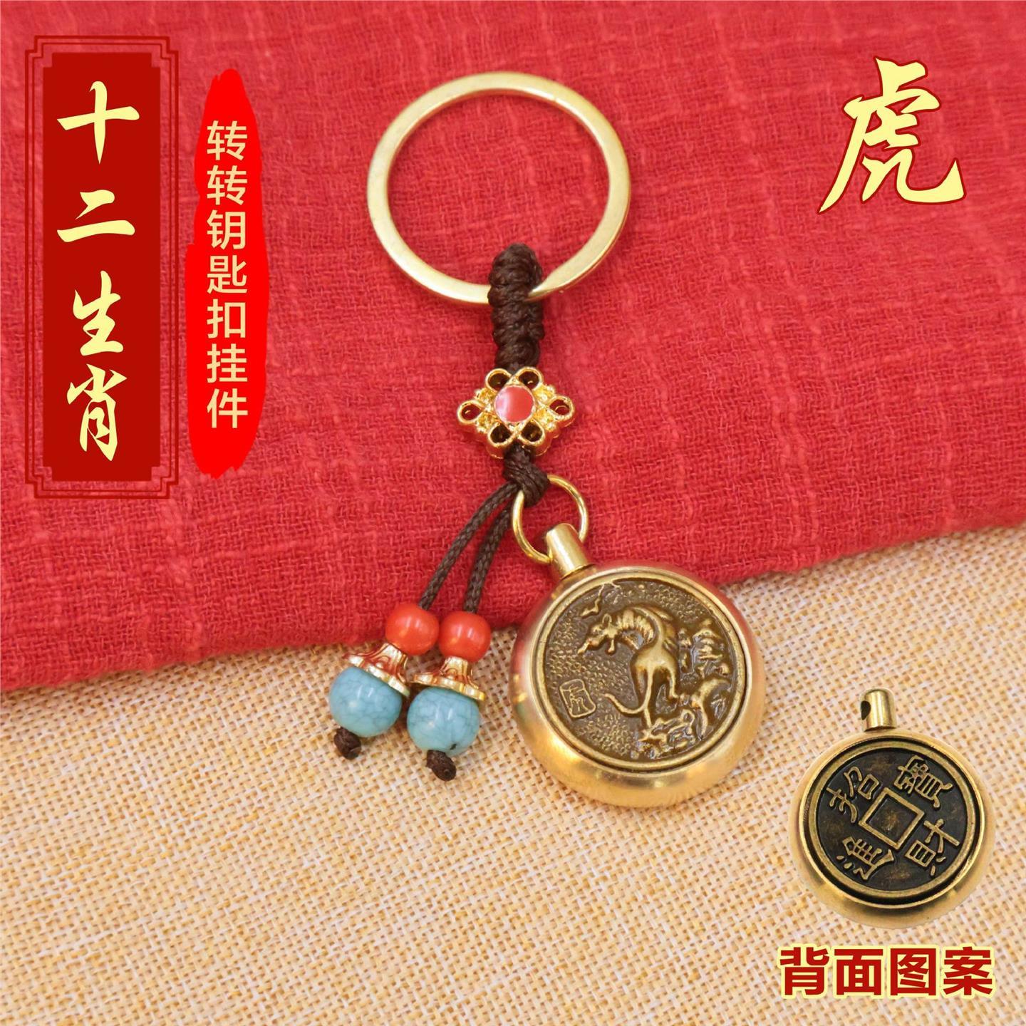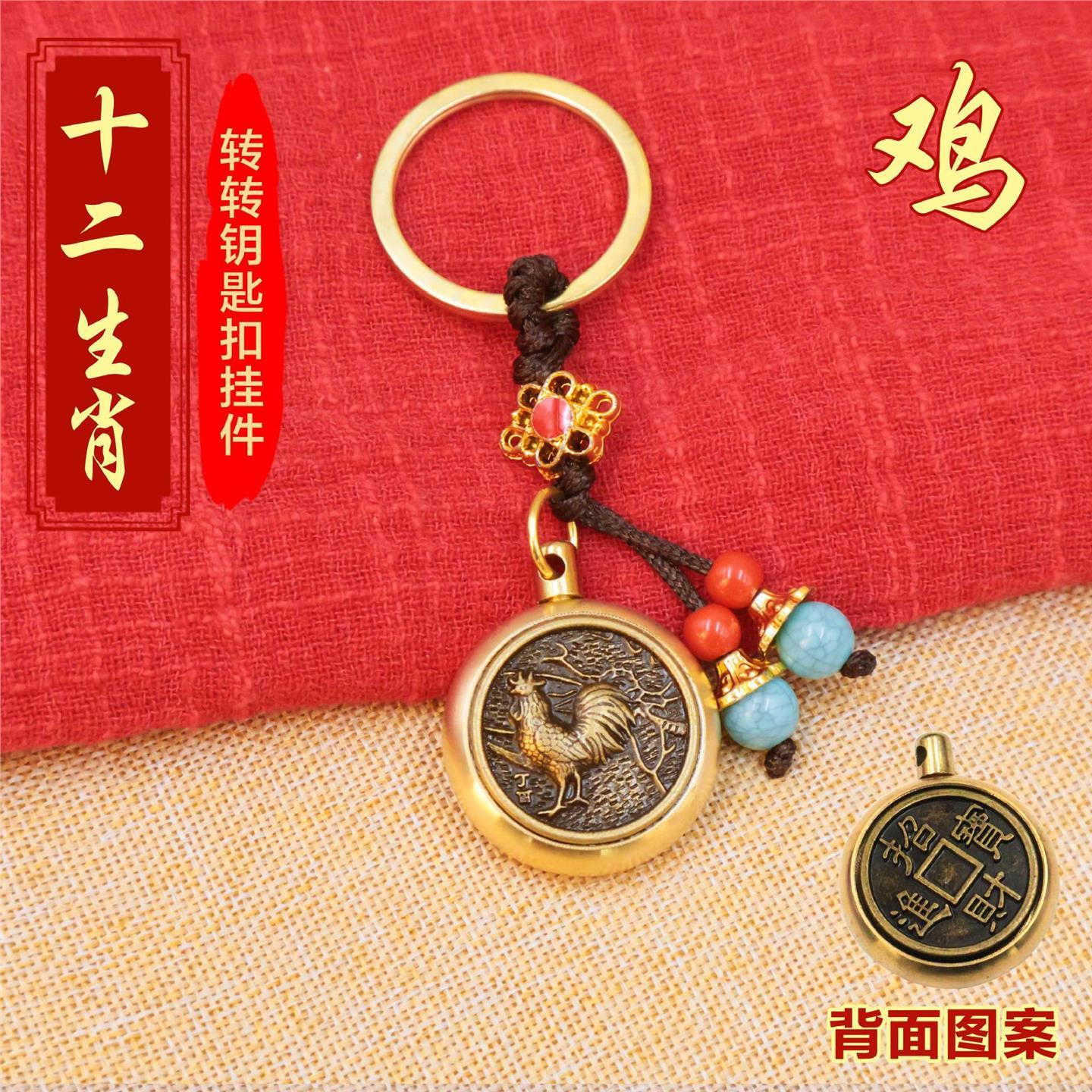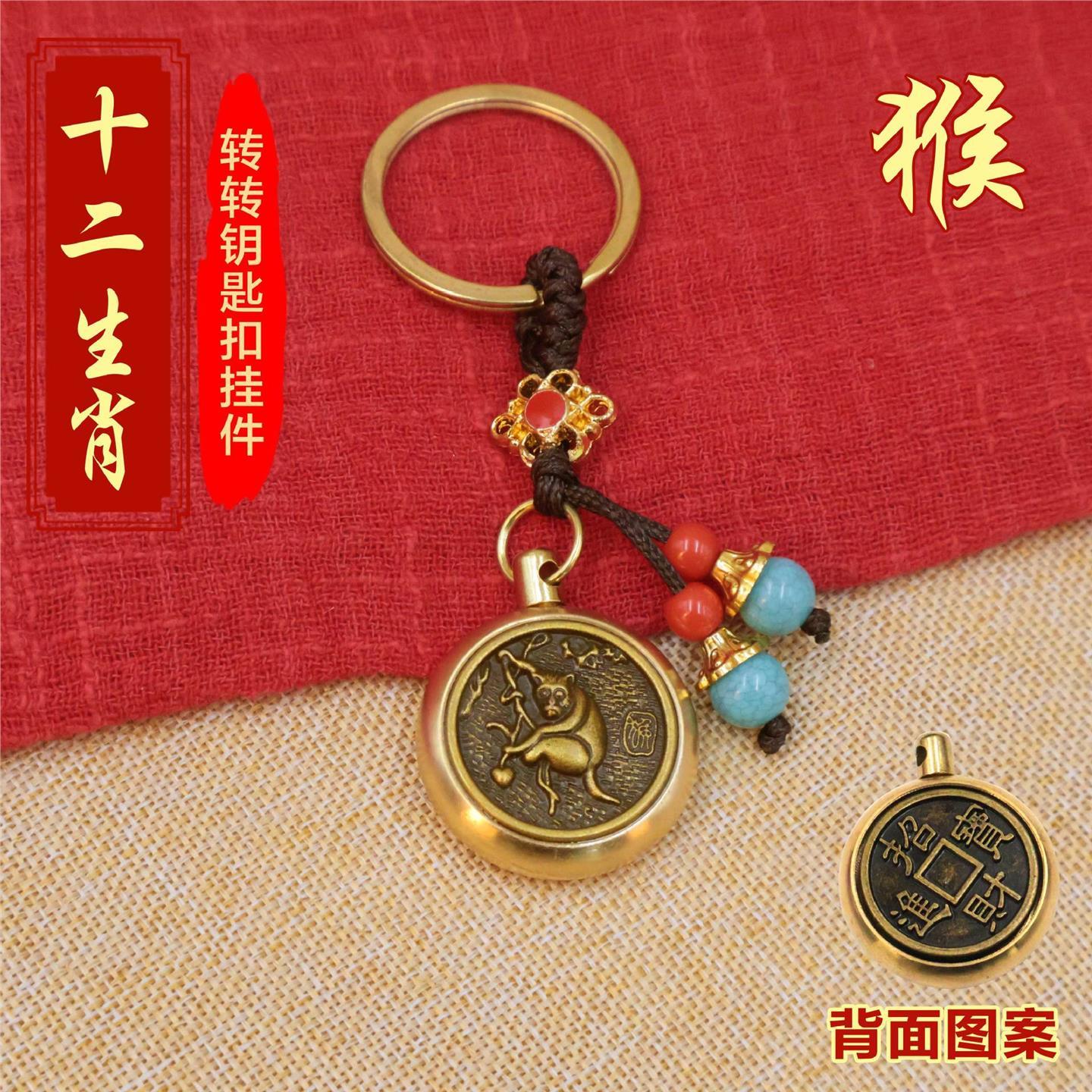 黄铜十二生肖招财进宝转转指尖陀螺解压小挂件男女钥匙扣挂件饰品