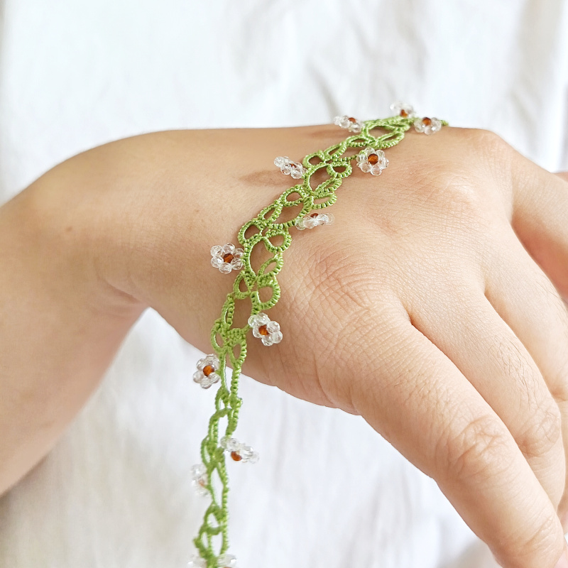 原创梭编蕾丝手链【小雏菊】森系法式浪漫DIY手工编织饰品 材料包