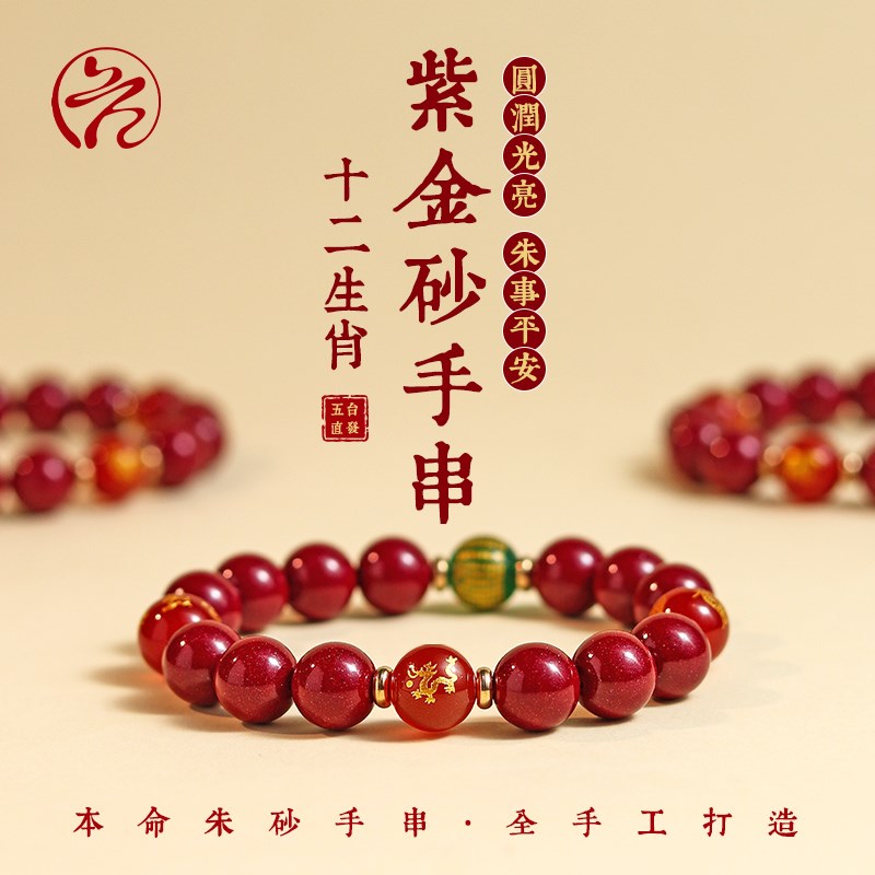 速发2024本命年朱砂手串吞金兽招财手链转运紫金砂十二生肖符