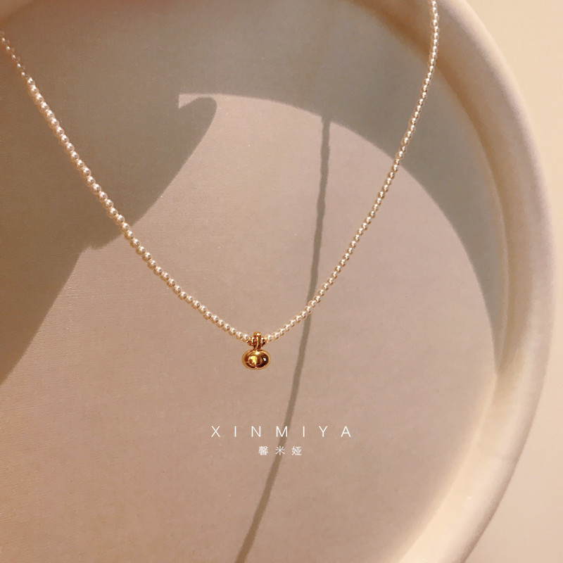 施家极细珍珠小米珠金豆豆爱心吊坠项链女气质高端轻奢锁骨链颈链