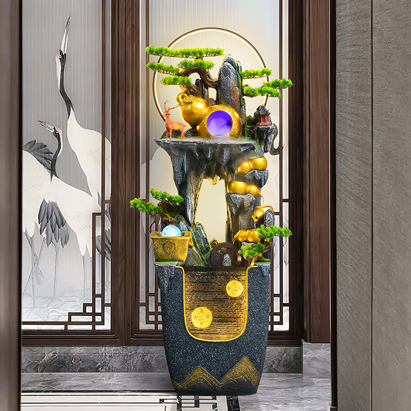 招财中式流水摆件假山循环水景装饰客厅办公室落地风水轮开业礼物