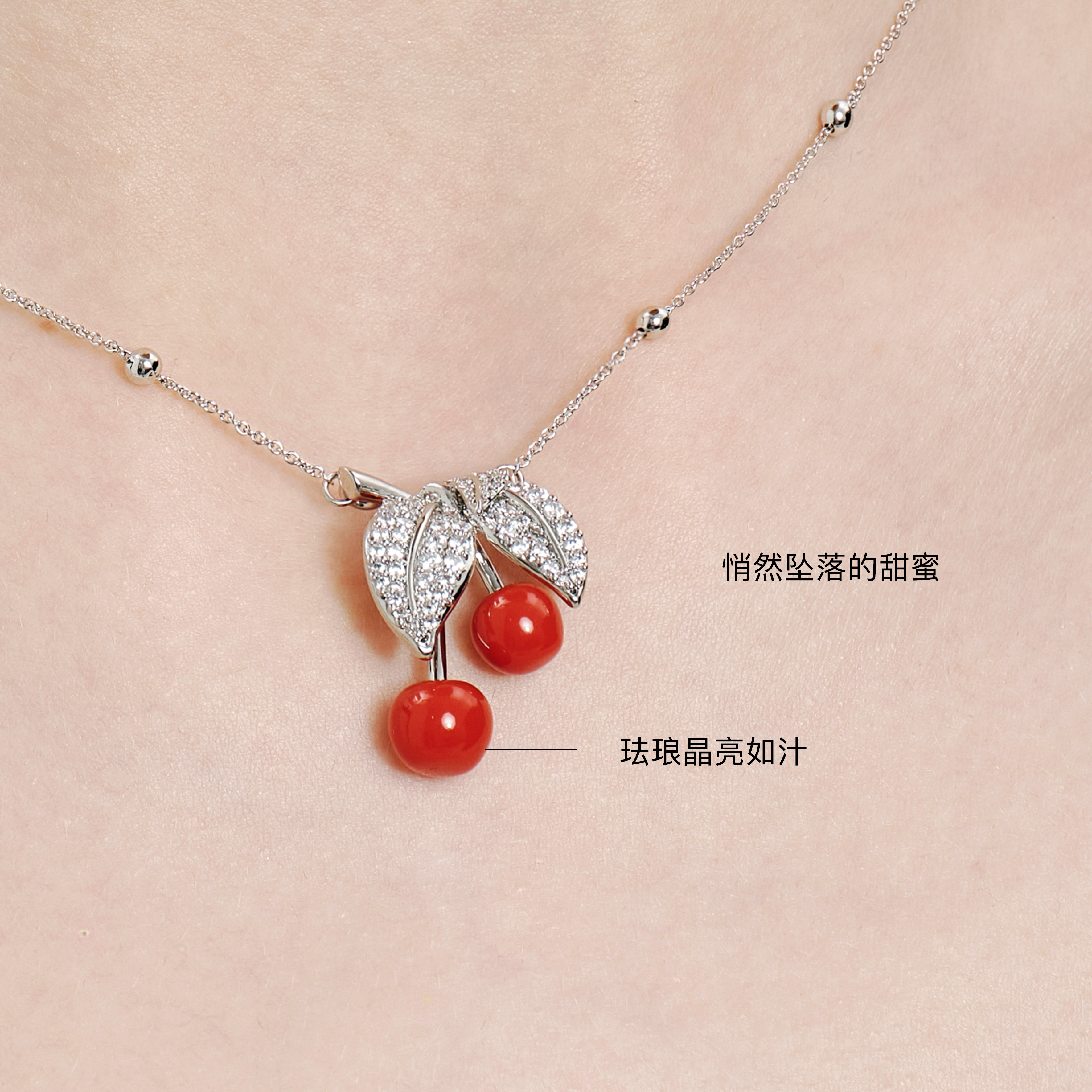 GdV水果系列水晶珐琅樱桃可爱甜美项链原创设计锁骨链送女友礼物