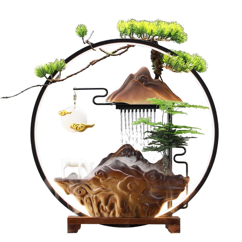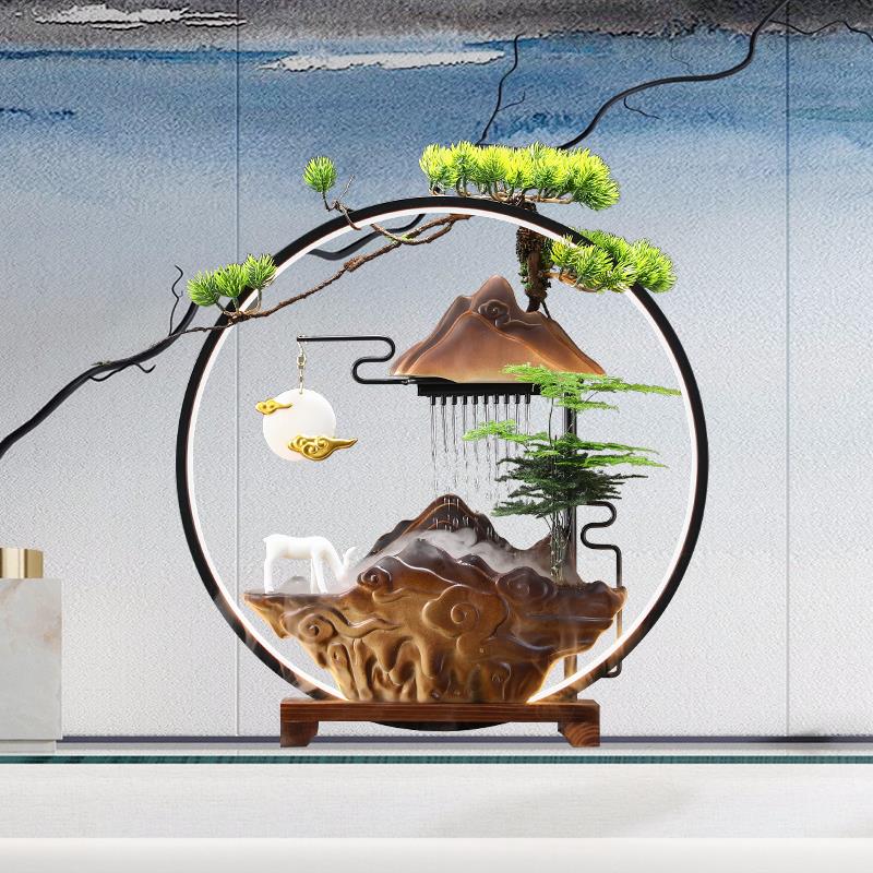 新中式招财流水摆件家居客厅办公室桌面循环水装饰品摆设开业礼品