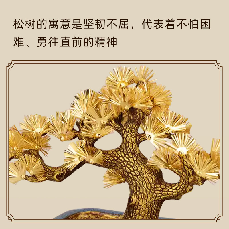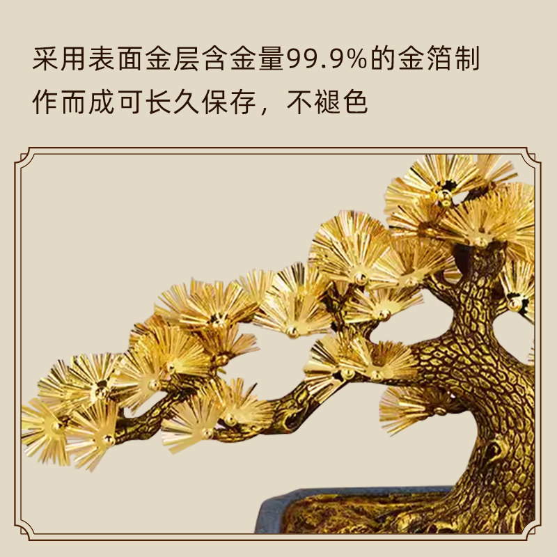 爱斯克金箔迎客松树桌面摆件家居家装饰品工艺礼品开业乔迁礼物