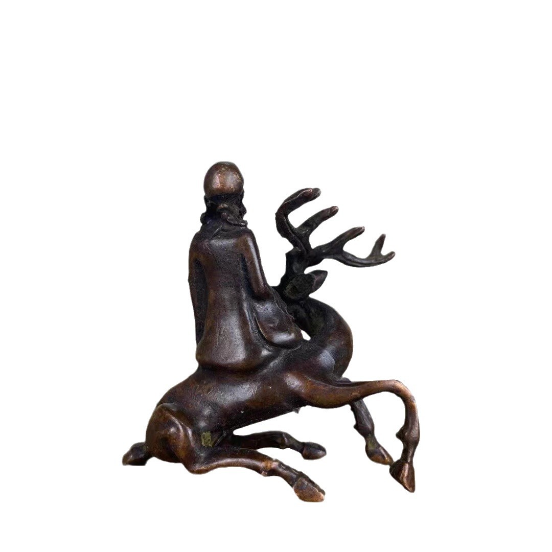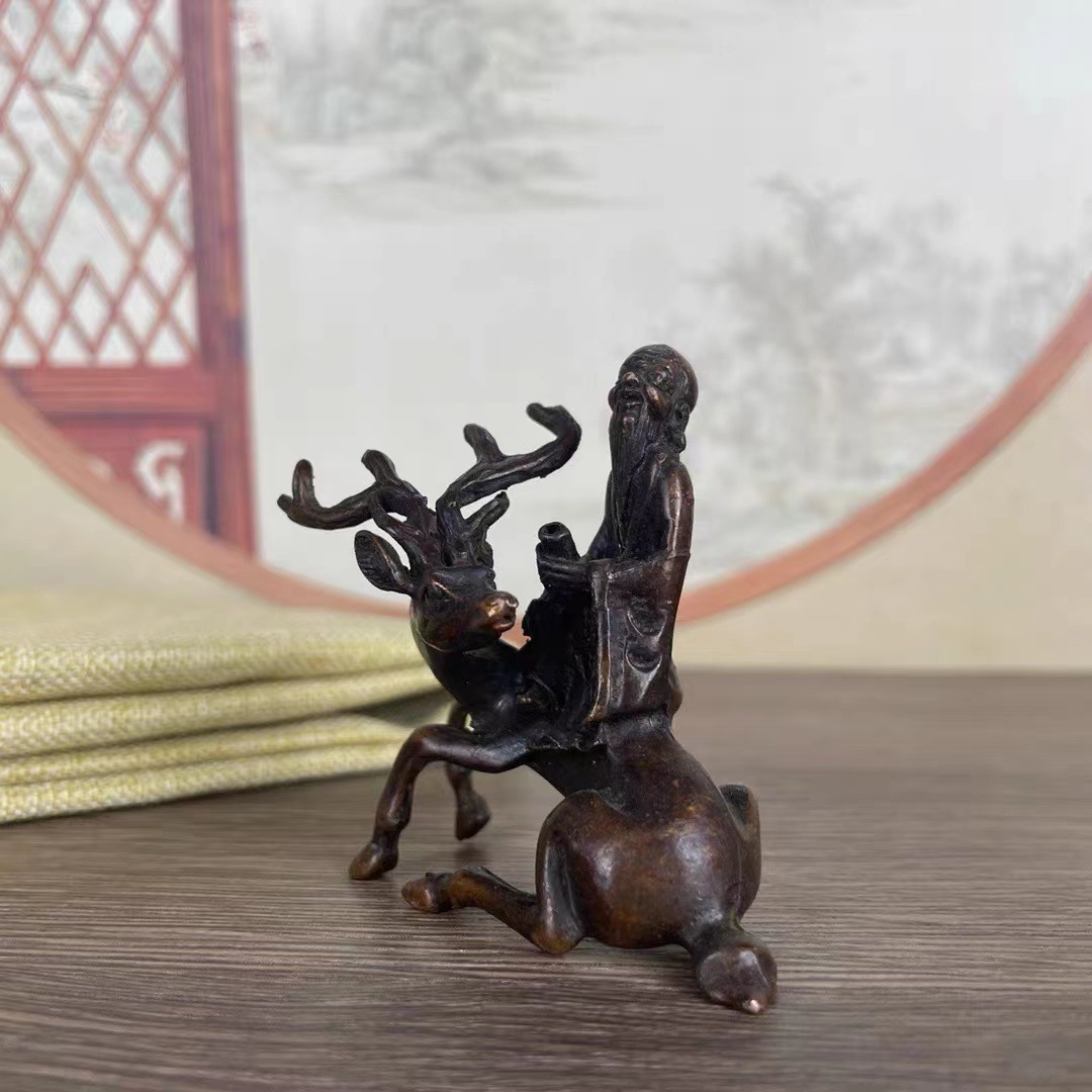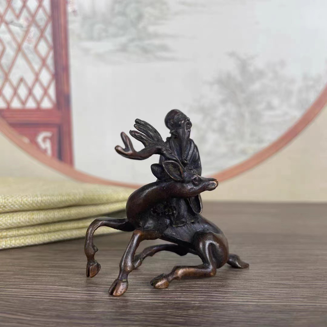 复古铜雕实心梅花鹿长角鹿茶宠笔架家居装饰摆件收藏坐鹿家居