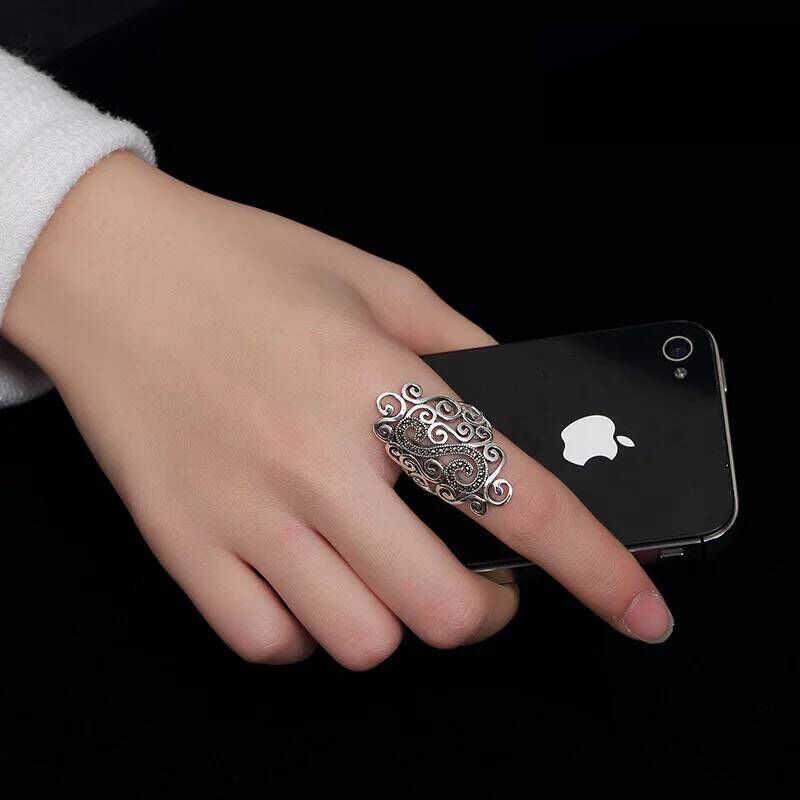 925纯银复古民族风食指戒指女时尚个性轻奢高级感夸张大指环小众