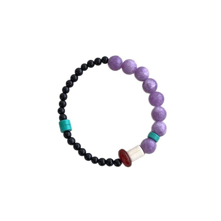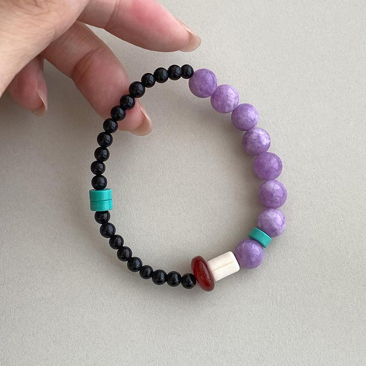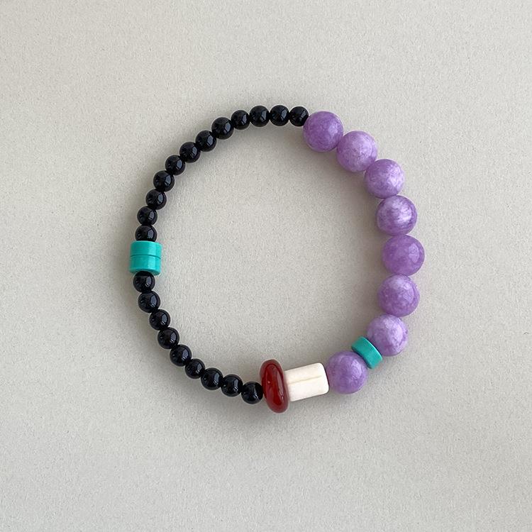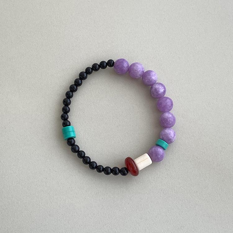 彩色天然石紫色撞色手链女小众设计手工串珠手串手饰天然同款爆款