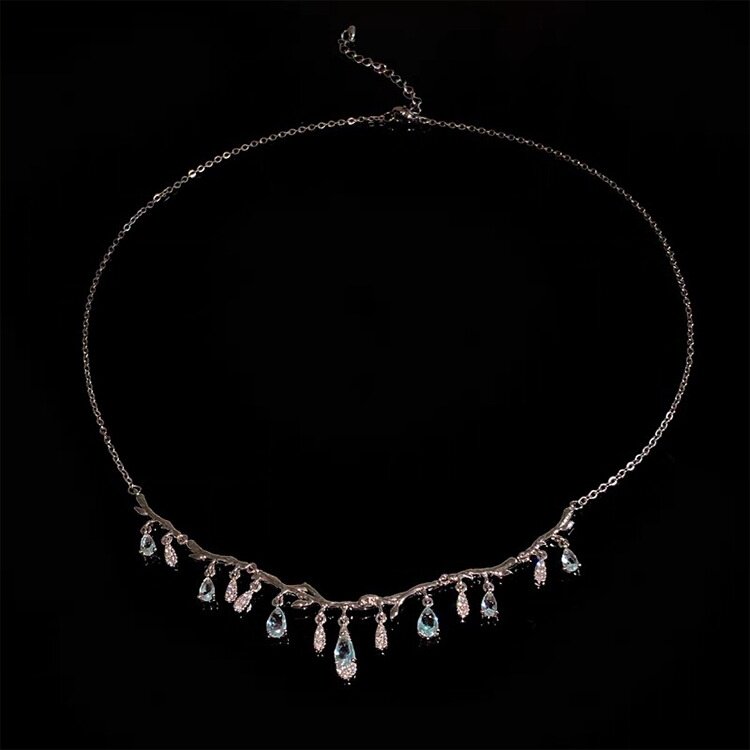 小众设计感不规则金属锆石水滴流苏项链女个性百搭气质颈链锁骨链