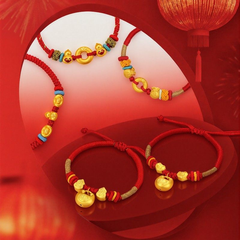 潮宏基宝护小胖福黄金手链足金手绳红绳5D硬金显大葫芦宝宝满月礼