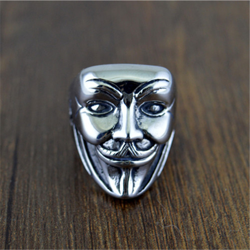 易烊千玺同款戒指个性人脸V字仇杀队面具指环嘻哈潮街舞饰品钛钢