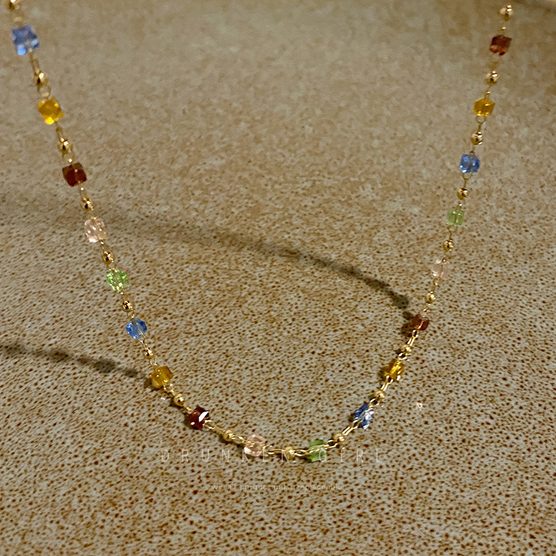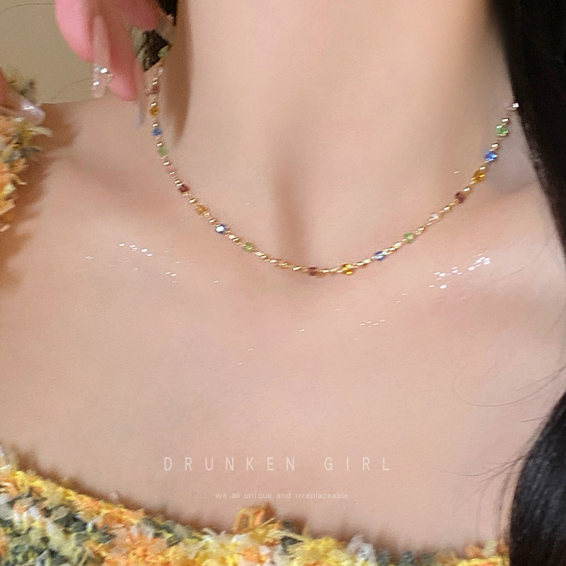 2025新款彩色水晶串珠项链女小众设计高级感锁骨链简约多巴胺颈链
