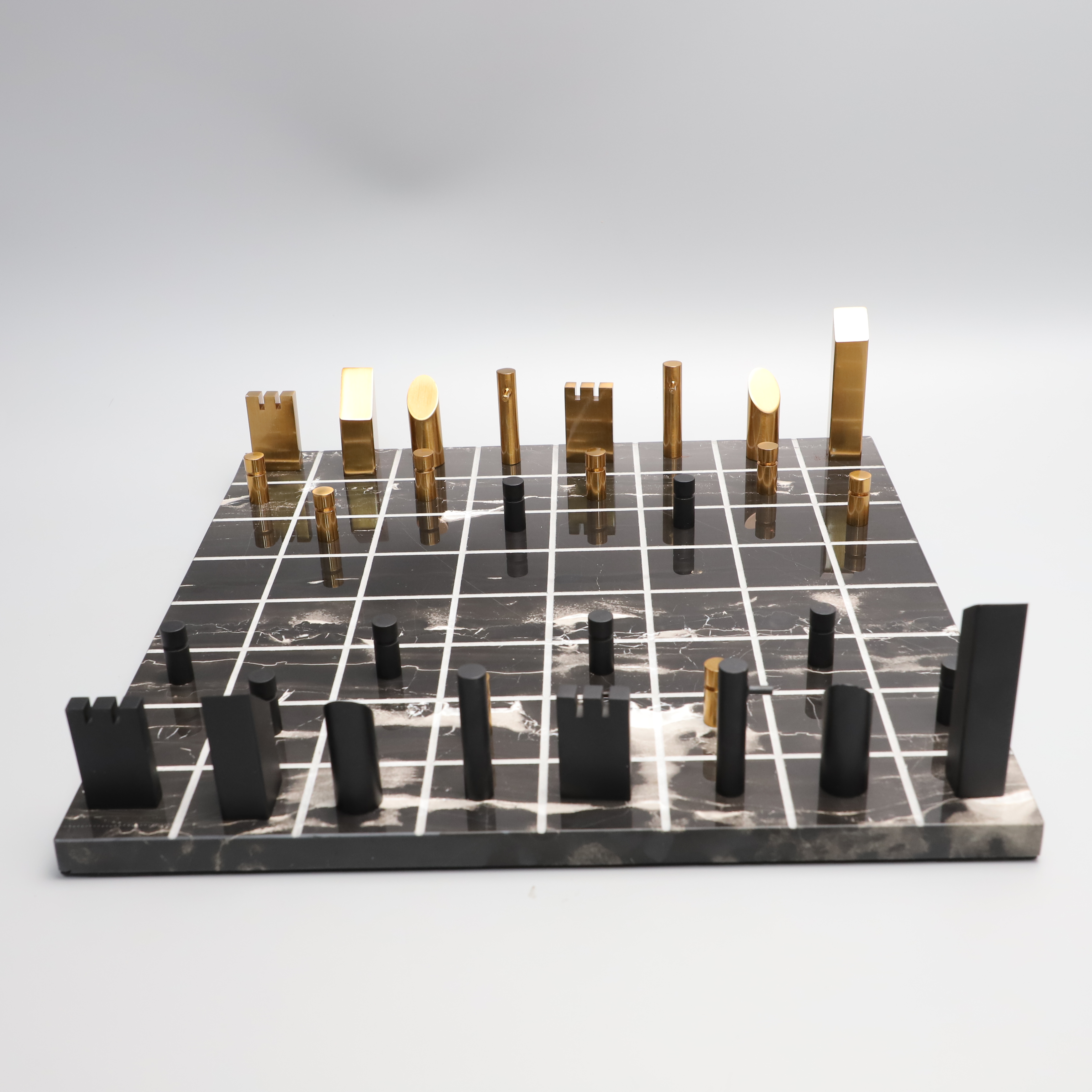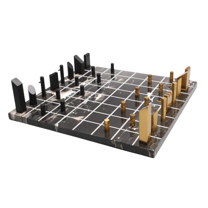 简约大理石棋盘几何摆件金属棋子样板间家居客厅轻奢桌面软装饰品
