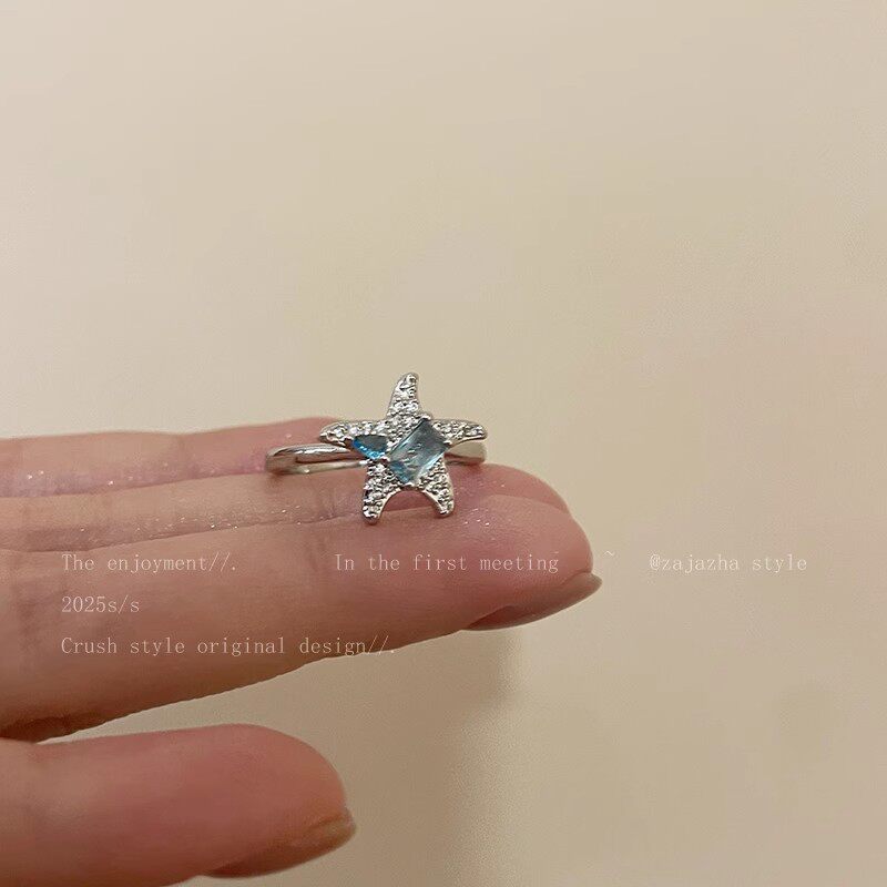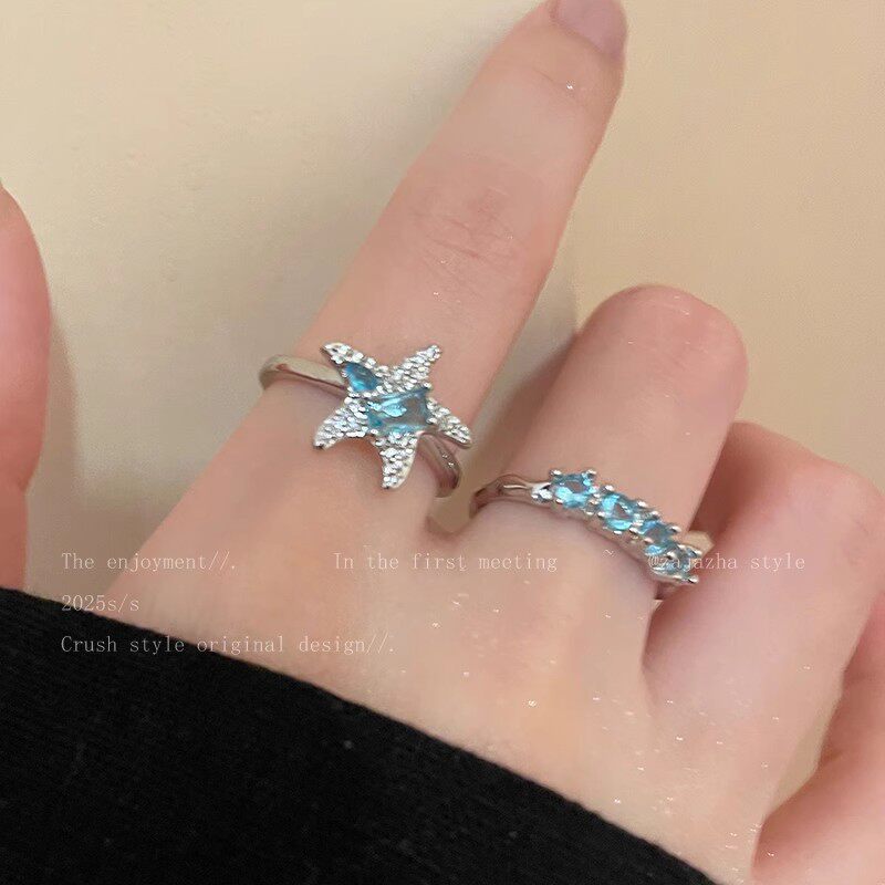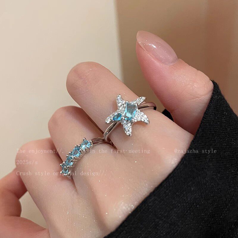 蓝色星星锆石戒指女轻奢小众高级感食指戒时尚个性叠戴可调节指环