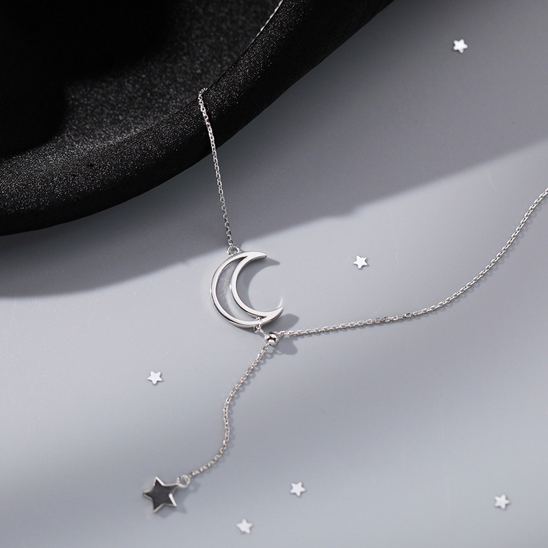 S925纯银月亮项链女轻奢小众高级感2025年新款星星流苏吊坠情人节