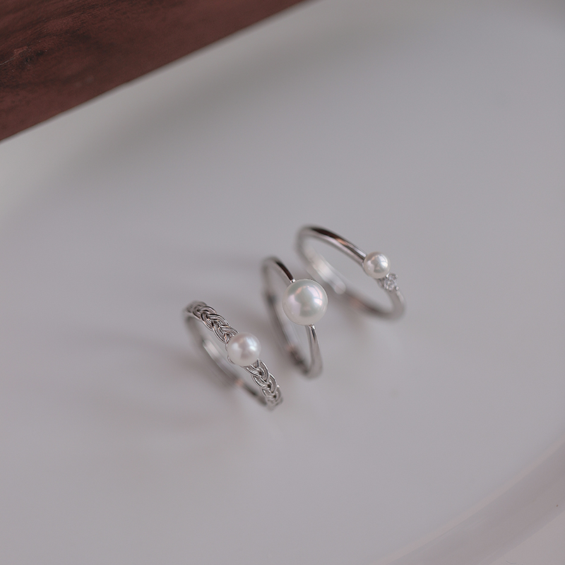 JUNJUN叠戴套装淡水馒头珍珠戒指通体925纯银简约百搭高级指环