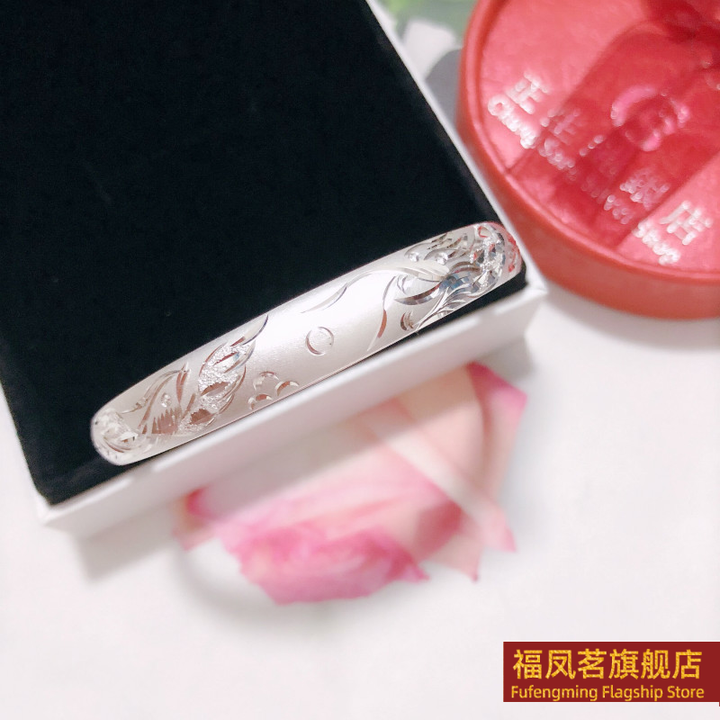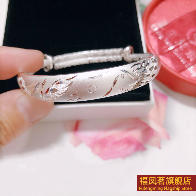 正生新款纯银龙凤戏珠车花推拉老人手镯足银s999长辈妈妈婆婆礼物