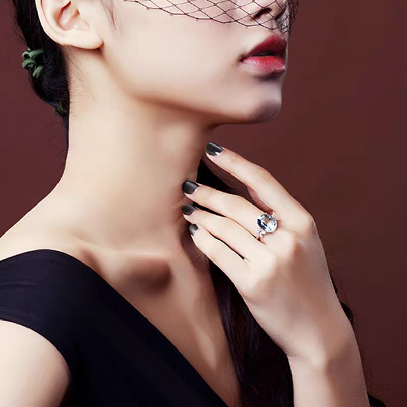 新品轻奢时尚天然托帕石戒指女款925银镀18K金指环网红小红书爆款