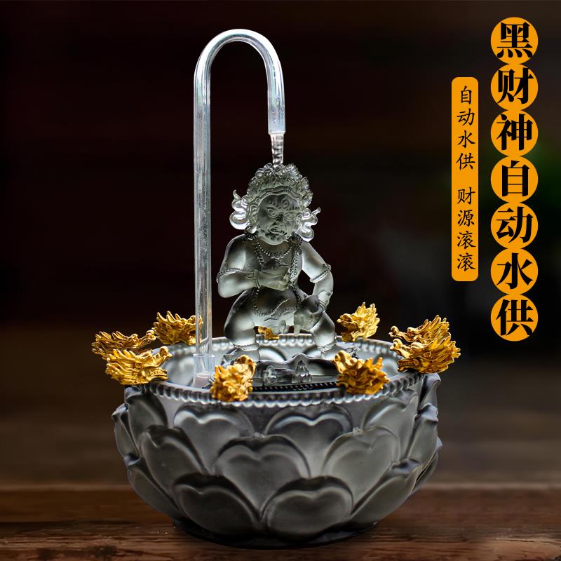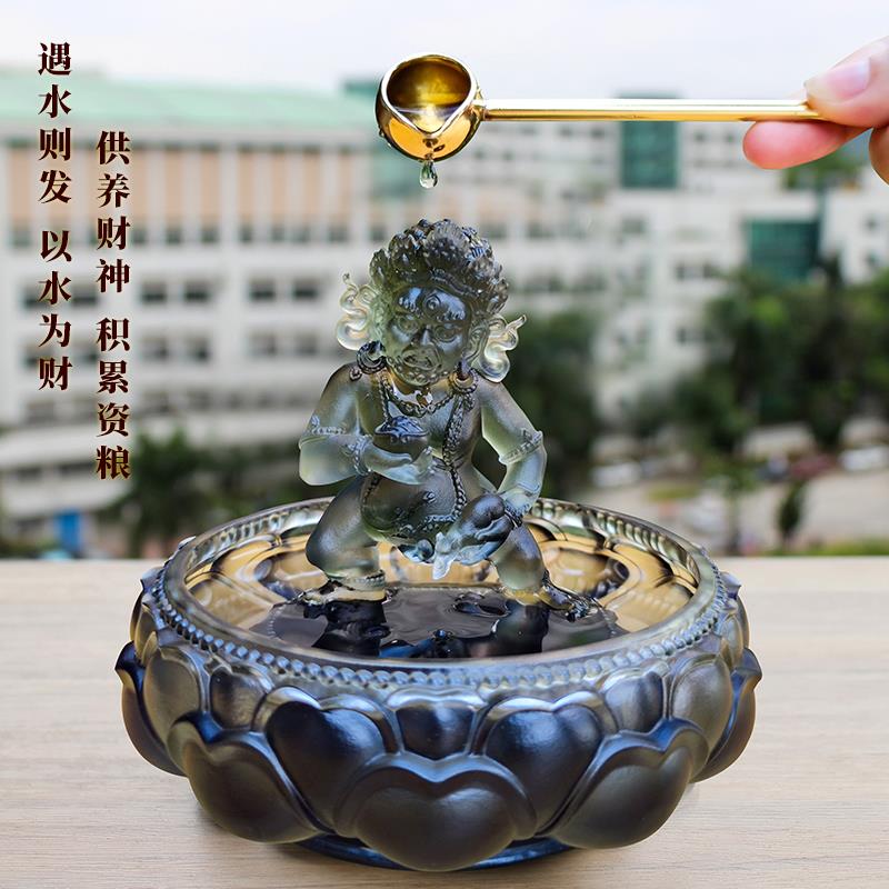 琉璃黑财神像黄财神爷五路财神招财佛像循环流水水供浴佛套装摆件
