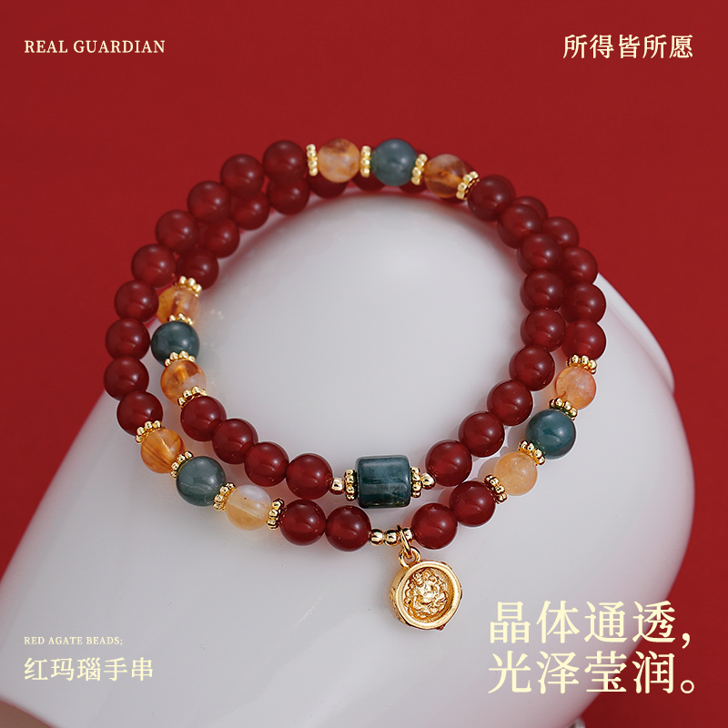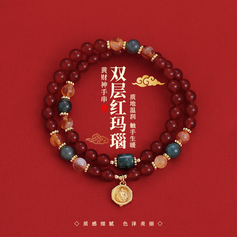 马年本命年双层叠戴红色玛瑙串珠佛牌手链女轻奢小众精致手串手饰