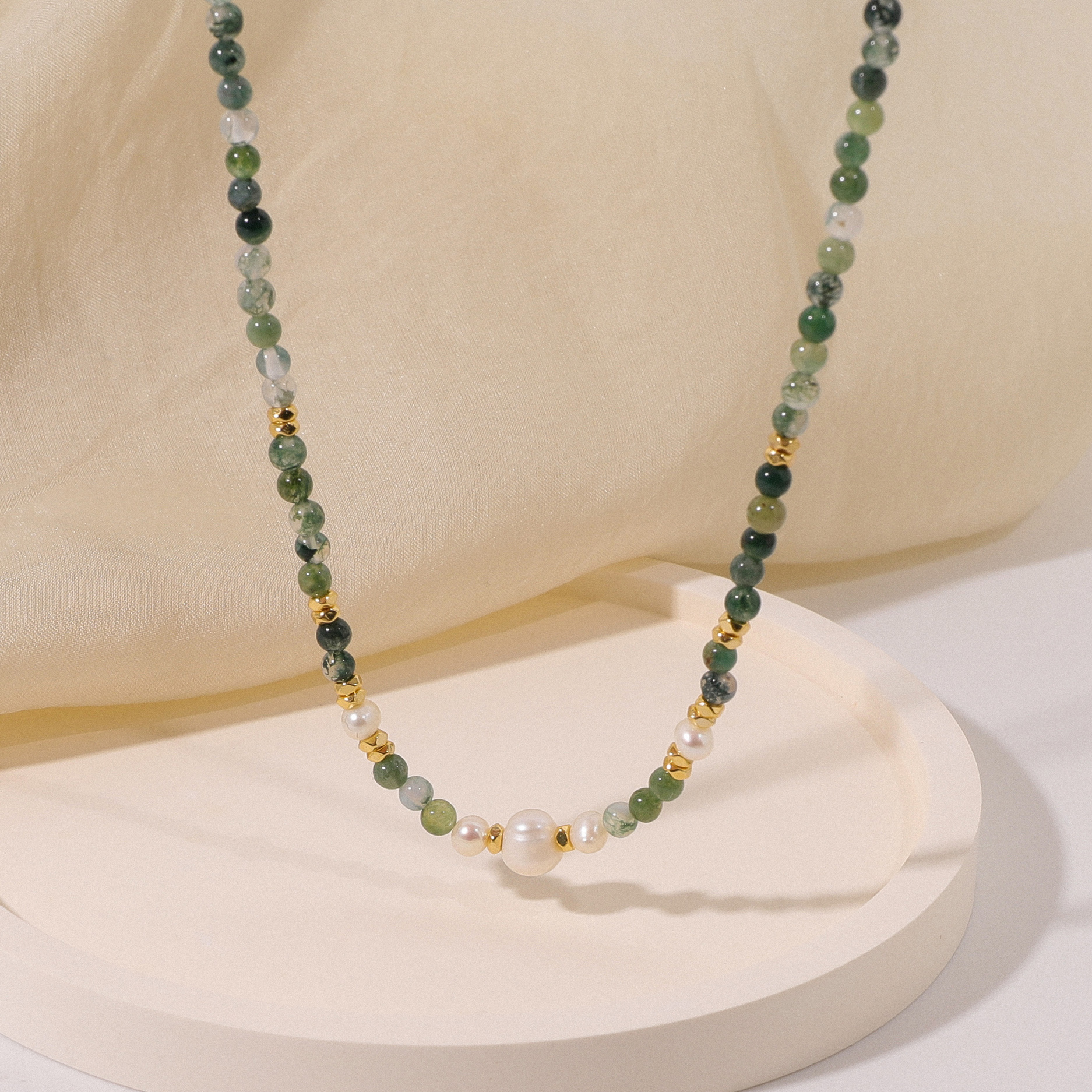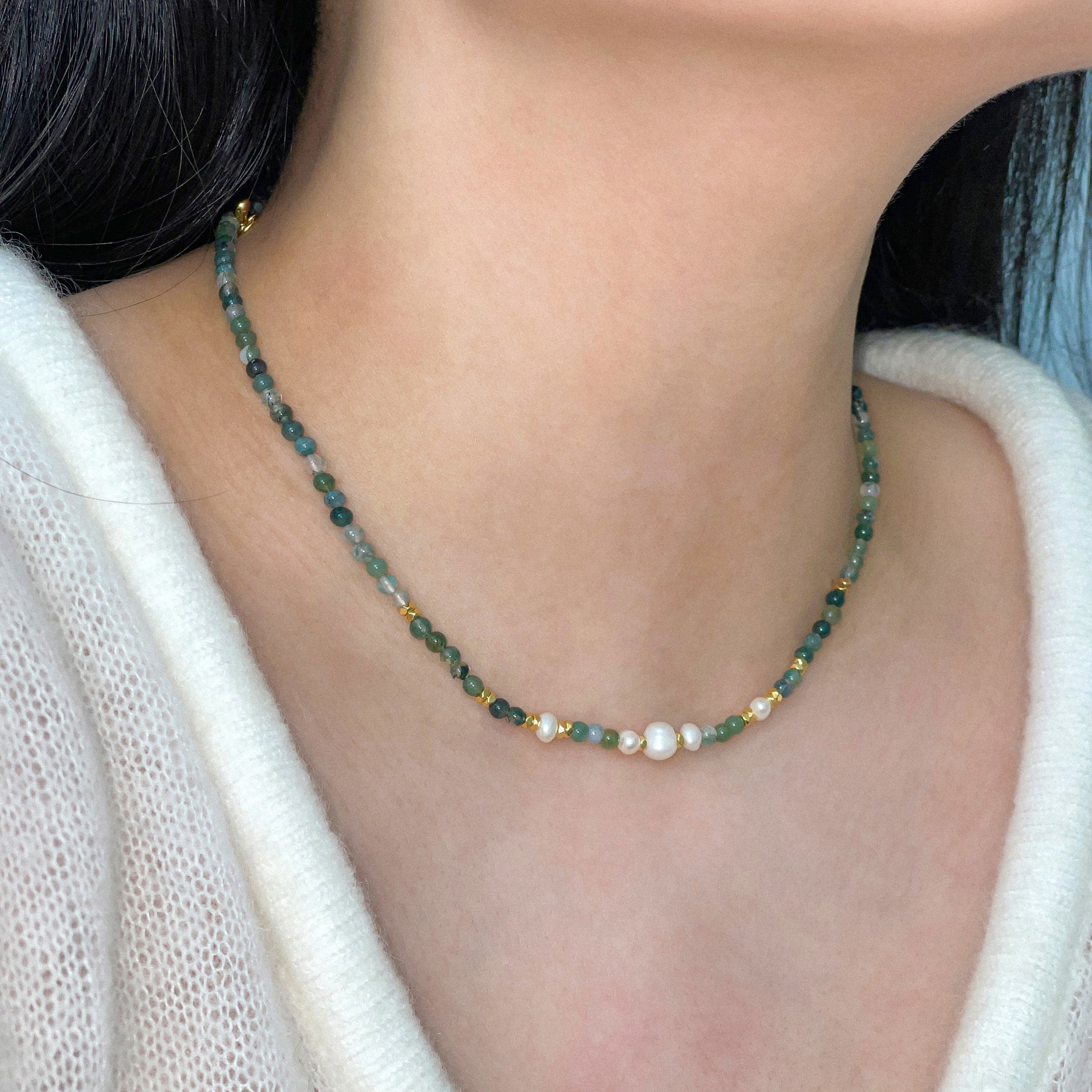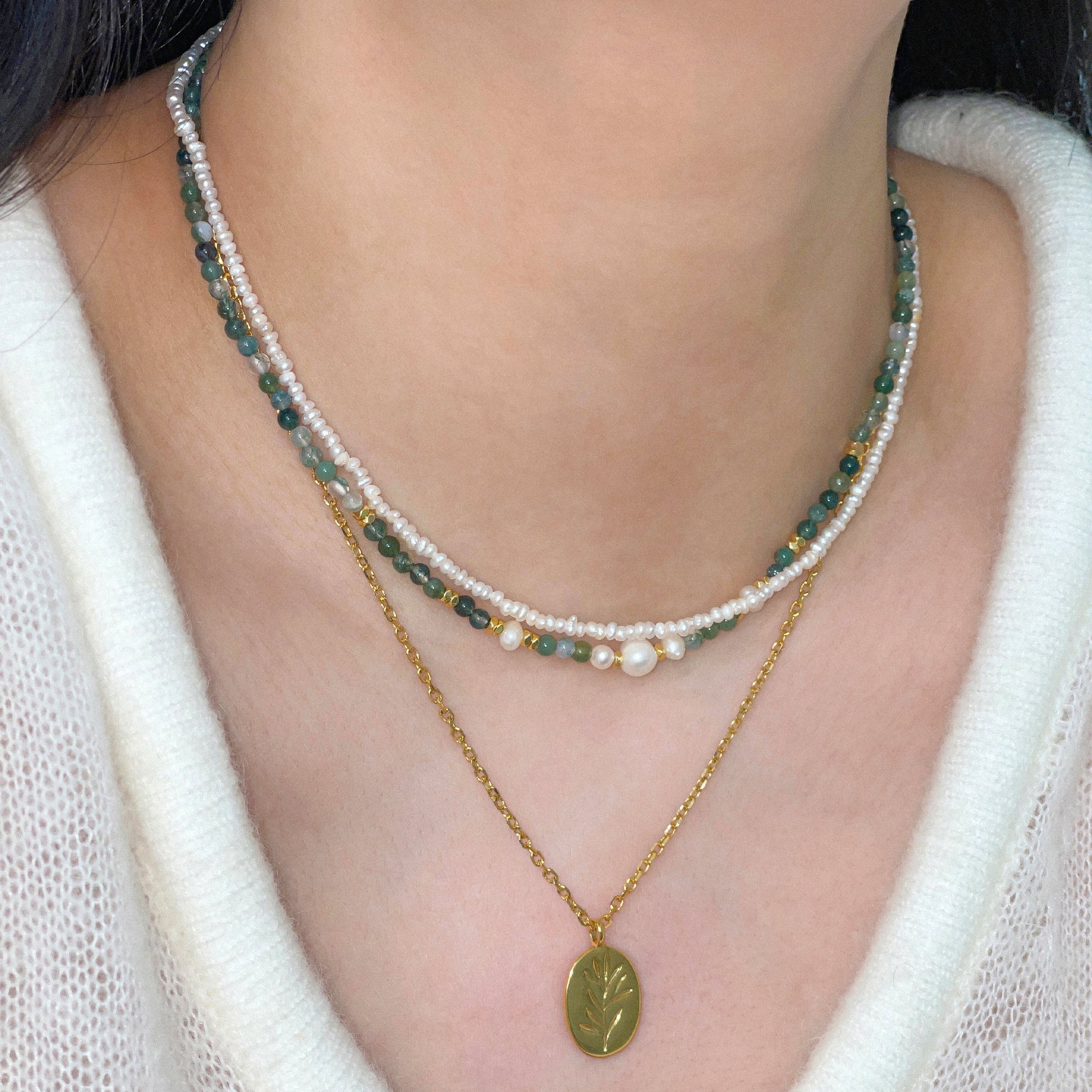 浮漾FLOAT复古绿色石材串珠项链小众天然淡水珍珠叠戴气质锁骨链