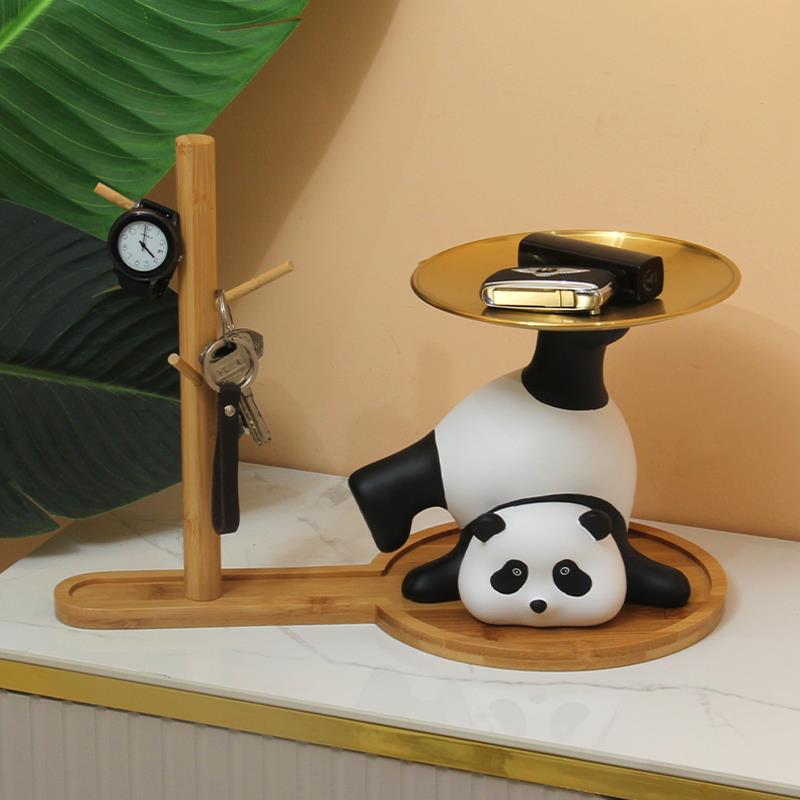 熊猫钥匙家居收纳托托盘摆件入户门口玄关轻奢装饰前台乔迁新居礼