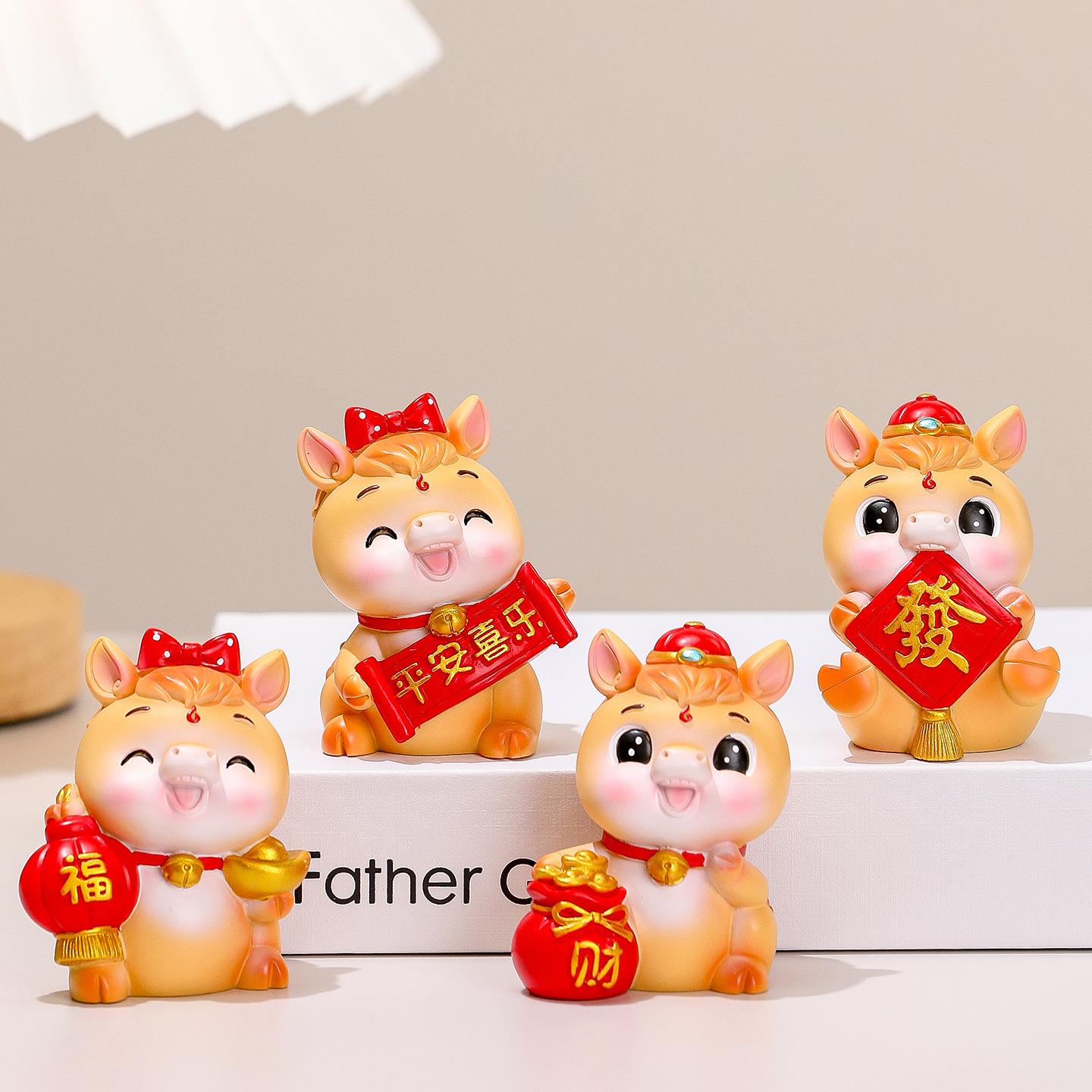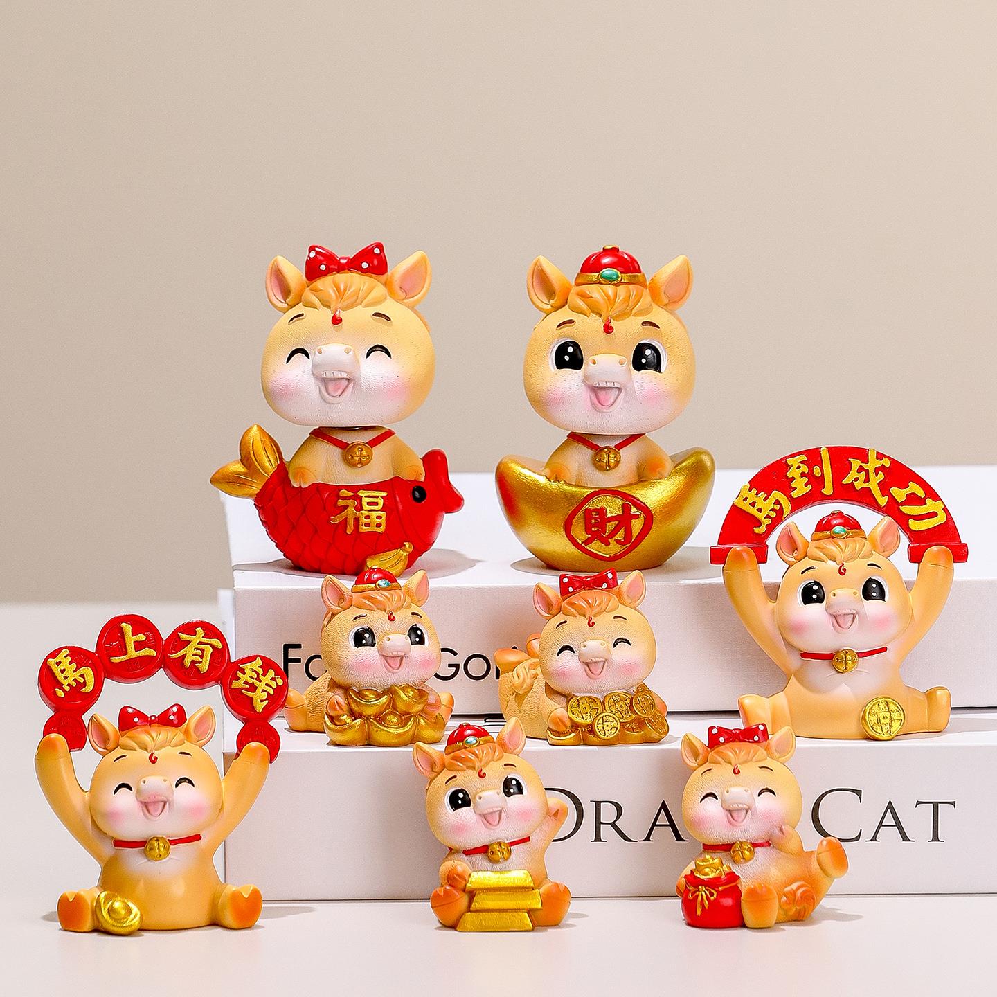 卡通可爱国潮马树脂小摆件办公室工位治愈系桌面装饰新年年会礼品