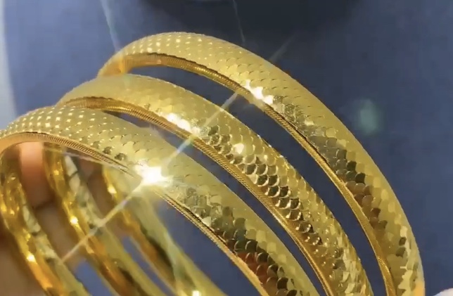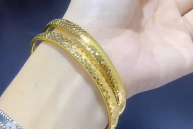 当前位置:首页>商品详情>12k黄金厚包999足金24k实心龙鳞蹦迪手镯手环波光粼粼古法国风