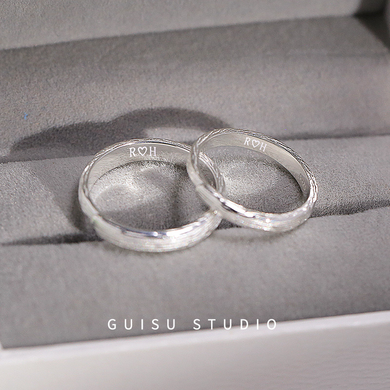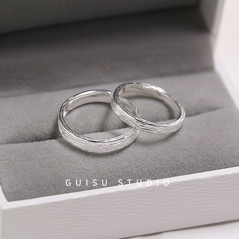 归素 岁月纯银一对情侣戒指小众设计素圈个性男999对戒开口刻字