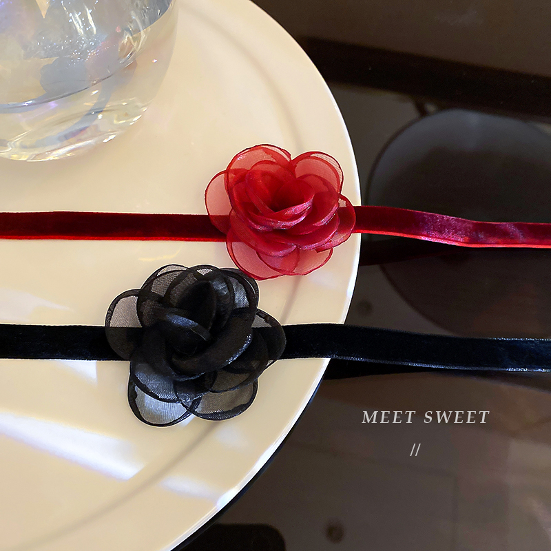 脖子配饰高级感花朵项圈系花choker锁骨链女项链颈带颈链黑色颈花