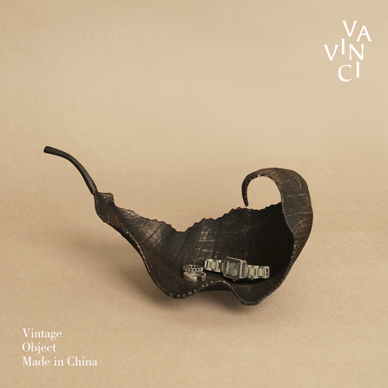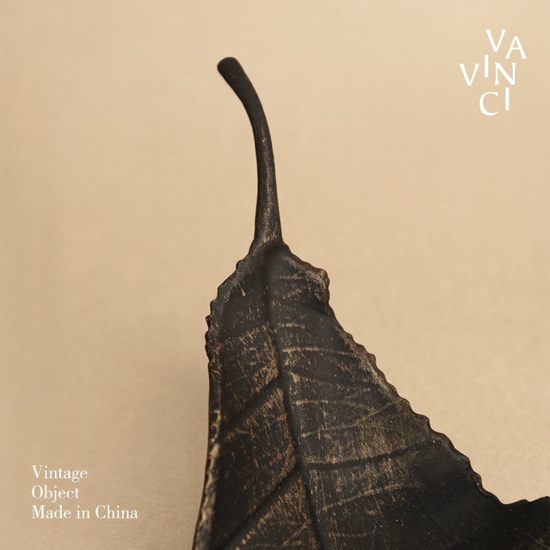 梵其【枯叶】复古做旧金属树叶托盘摆件样板房民宿茶室酒柜装饰品
