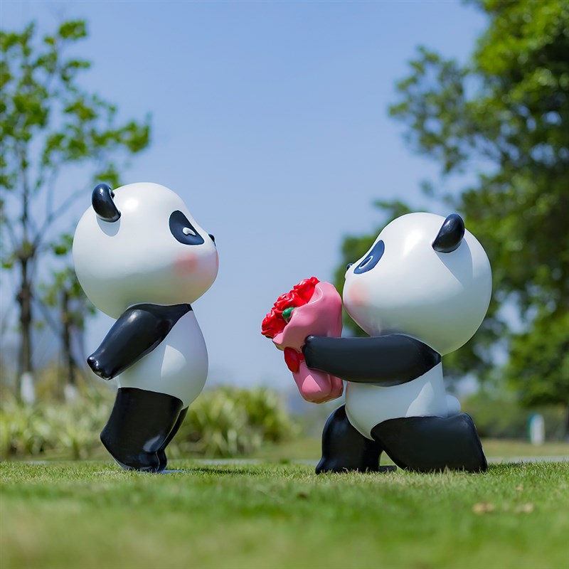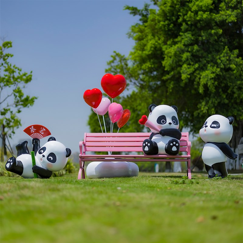 玻璃钢熊猫雕塑卡通动物公仔w摆件商场美陈装饰品户外打卡景观雕